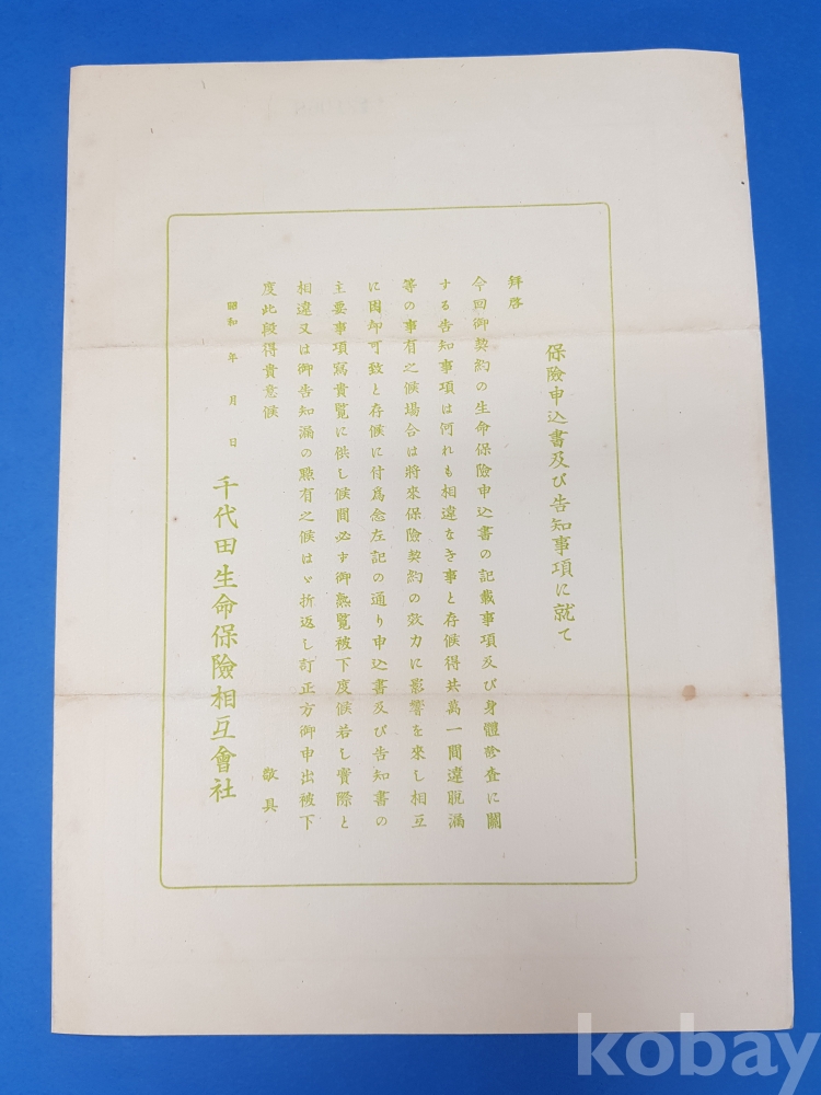 [k70] 1939년 千代田생명보험상호회사 [보험신립 및 告知寫]