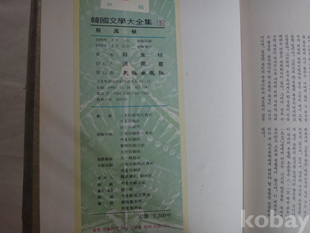 (한국문학대전집) 채만식 (1976년 초판, 태극출판사)