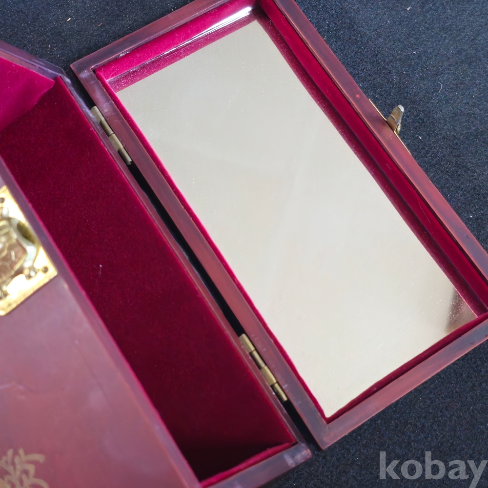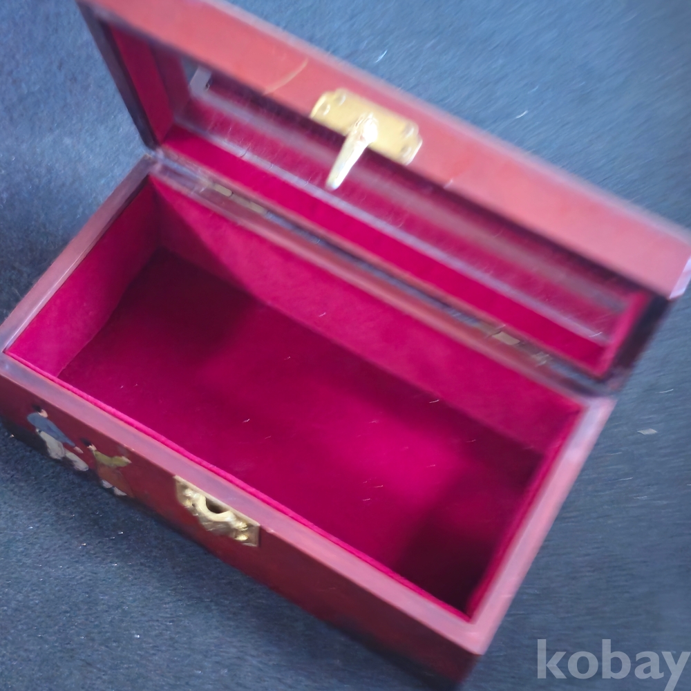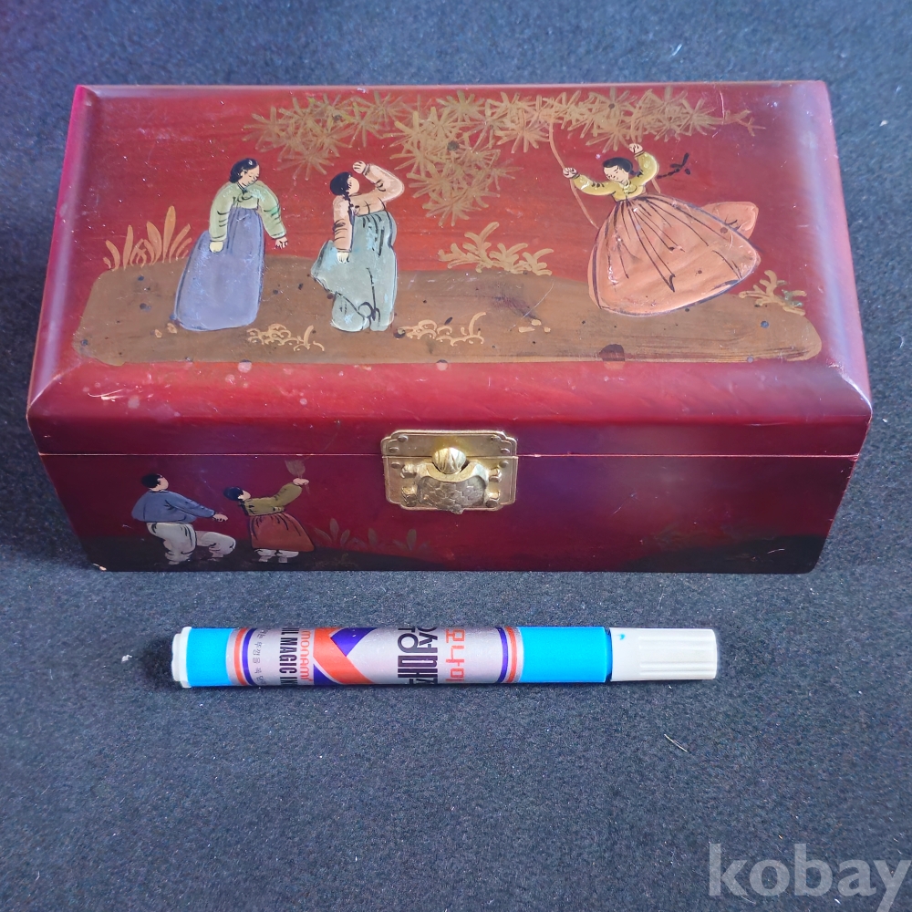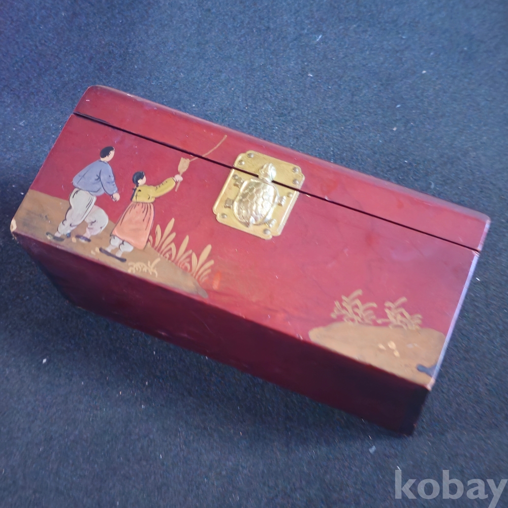 (((근현대사자료))) 오래전 그네타는여인과 연날리는 남여모습이 정겹게 양각되어있는 거울달린 나무 함