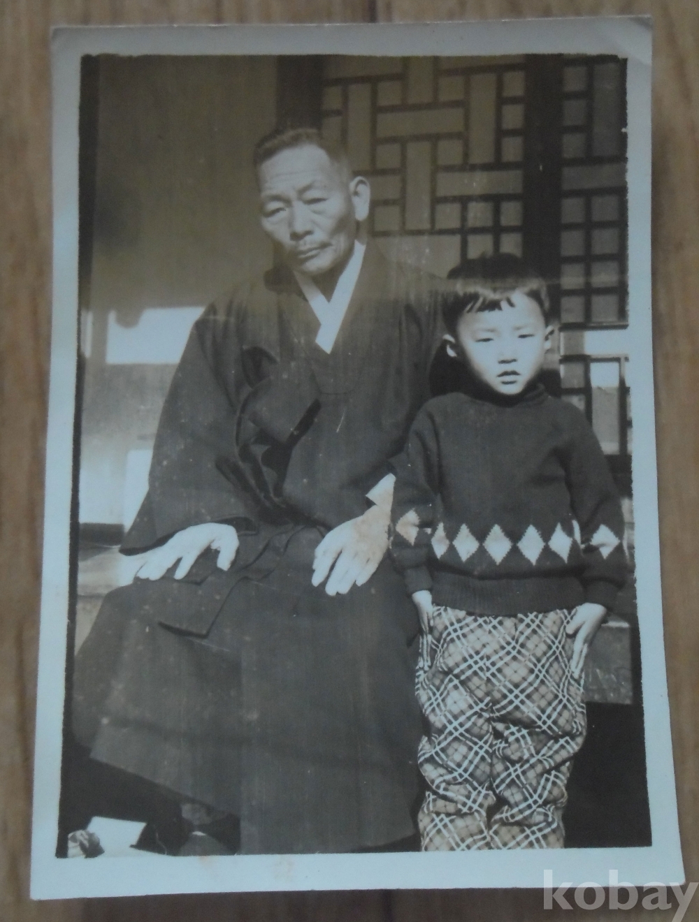흑백사진: 할아버지와 손자
