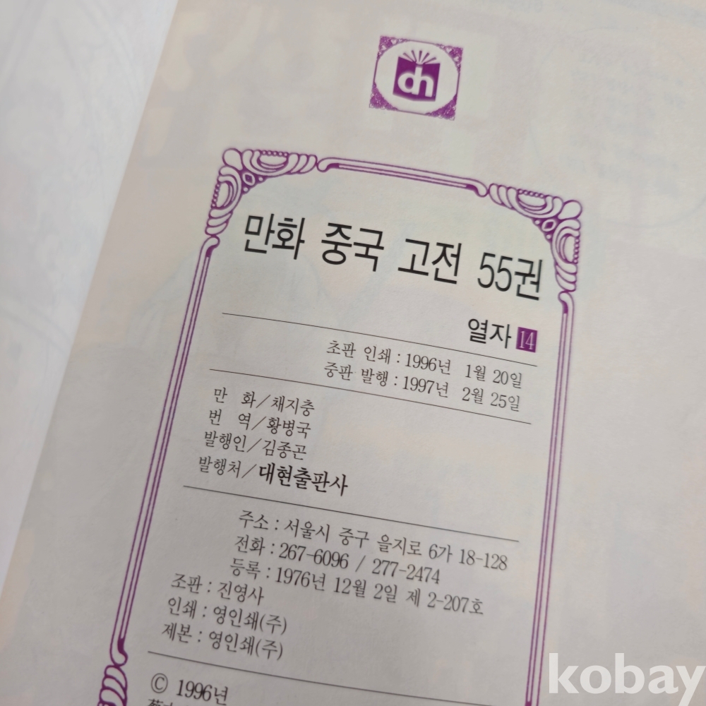 1997년 대현출판사에서 발행한 만화로 배우는 중국고전입니다