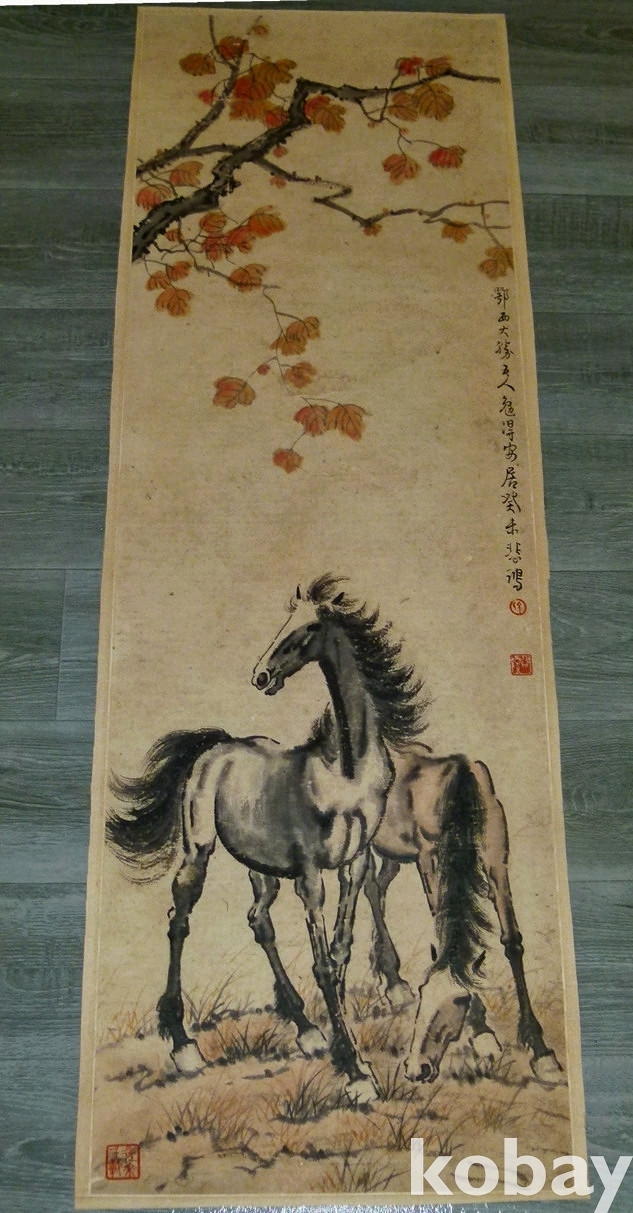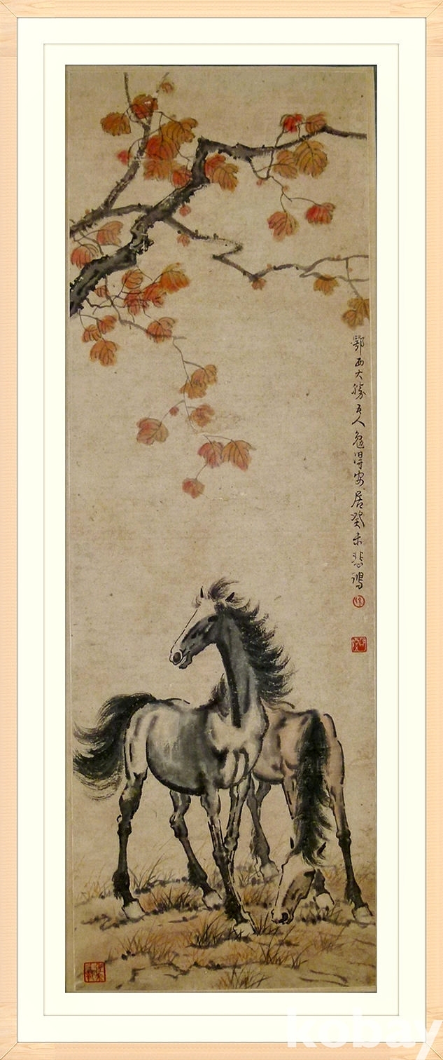 서비홍의 전형적인 쌍마도(雙馬圖)로, 작품,화풍은 물론 재질의 연대,필체 그리고