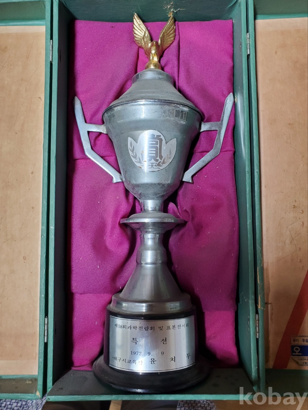 대구 교육장 명의의 1972년 제18회 과학전람회 및 표본전시회 특선트로피