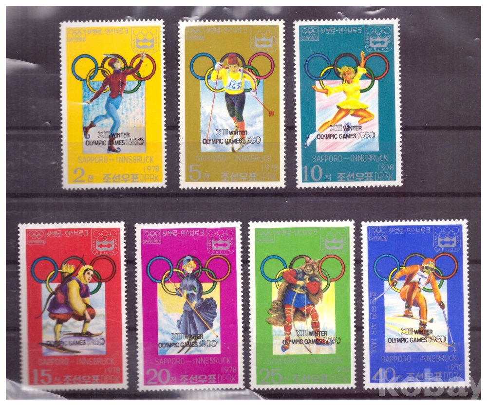 (동계올림픽) 북한 1979.7.17 제13차 겨울철올림픽경기대회(덧인쇄) 7완 MNH