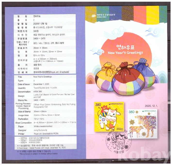 (안내카드) 2020.12.1 연하우표 (접지않음)