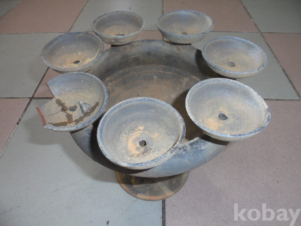 받침대위에 술잔을 올려놓은것같은 탱탱하여 진위와 이름알수없는 토기로 아무튼 멋있는 연구대상인 잔하나깨진 둥근토기 큰술잔대