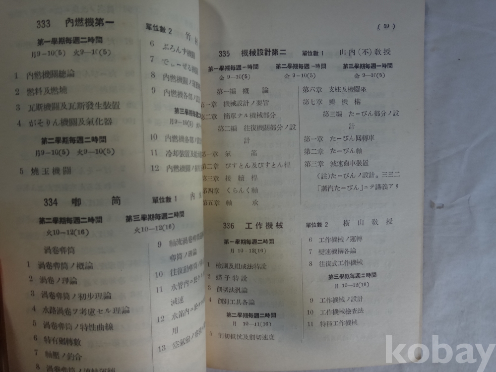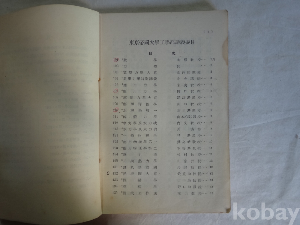 동경제국대학 - 공학부 강의요목 (소화5년)