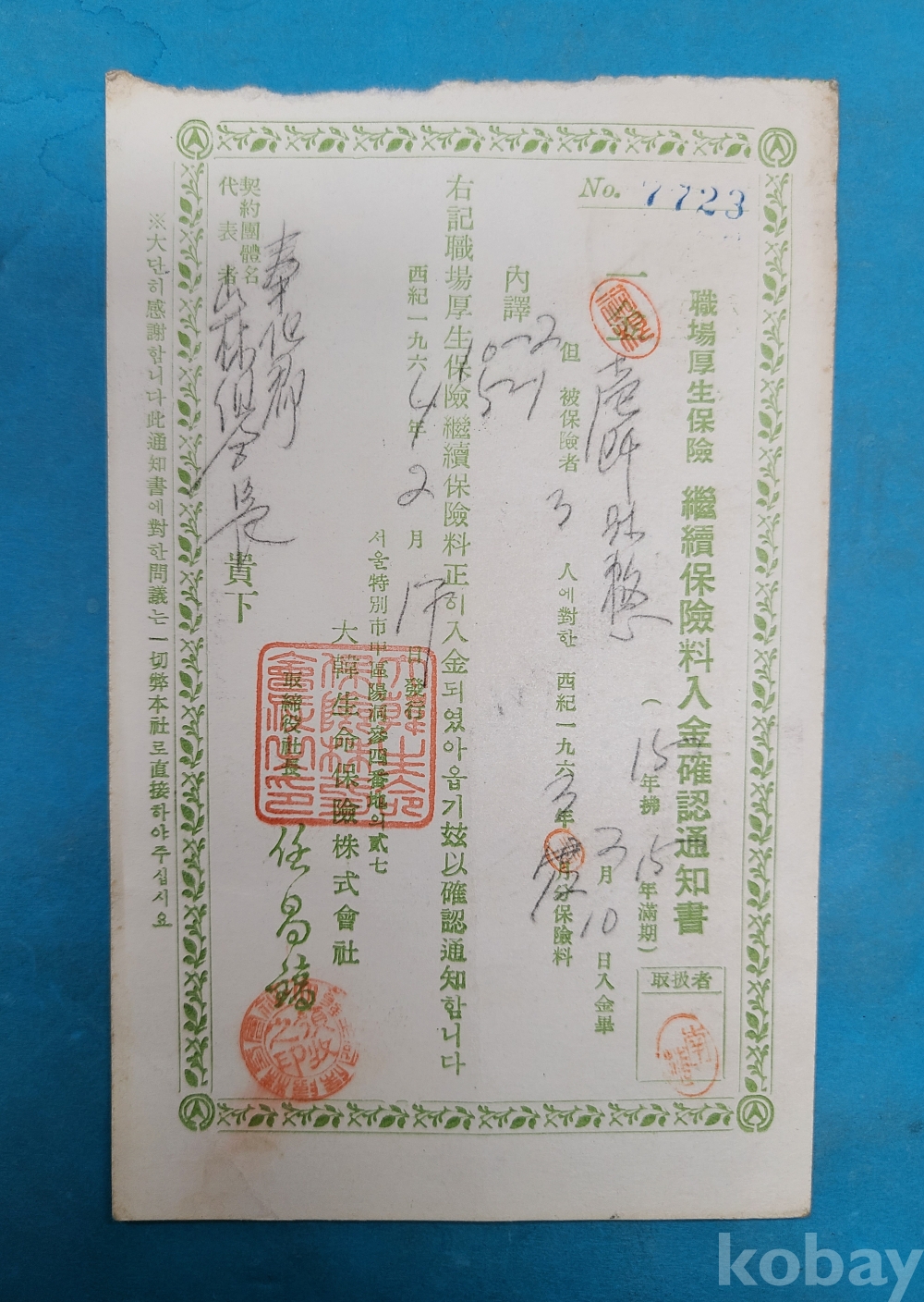 보험자료*대한생명보험주식회사,1964.2.17