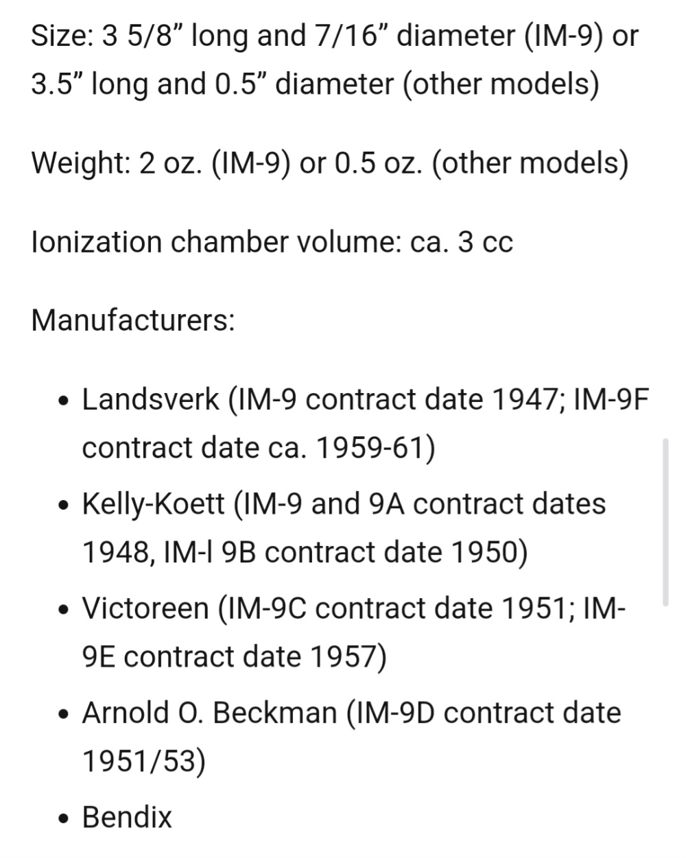 IM-9C/PD는 감마선 노출을 측정하는 포켓용 측정기로 제조사는 Victoreen이며 1951년 제조한것으로 추가사진에 나와 있습니다.