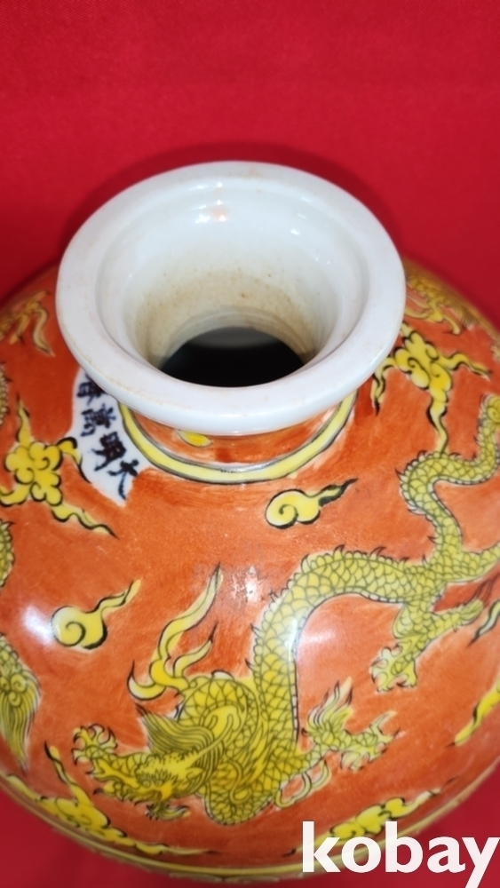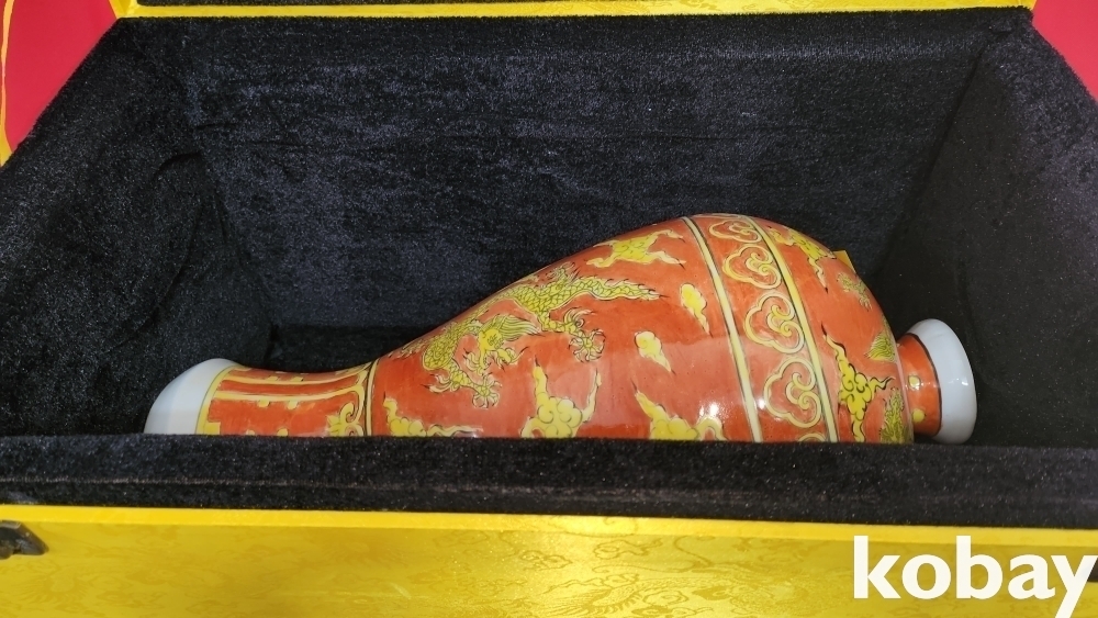 대명만력연제 (大明萬曆年製) 홍유(黃窯) 황지 운용문(雲龍紋) 매병 (梅甁) 입니다,