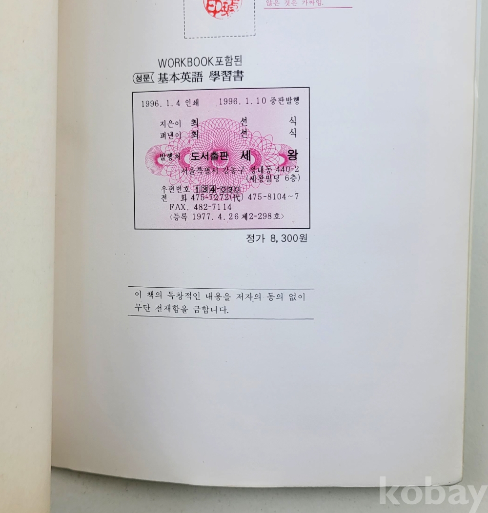 | 물 품 명 | 성문 기본영어 ⦁ 학습서 총 2종 / 1994, 1996년 / 송성문, 최선식 / 성문출판사, 세왕 |