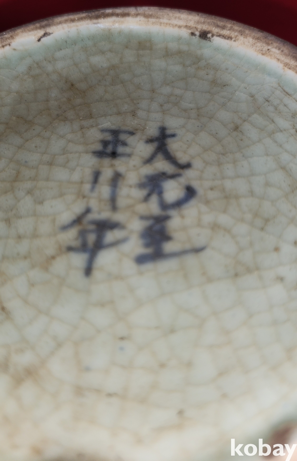 대원지정8년제 관지 청화유리혼 빙렬이 만개한 인물문양 호입니다,