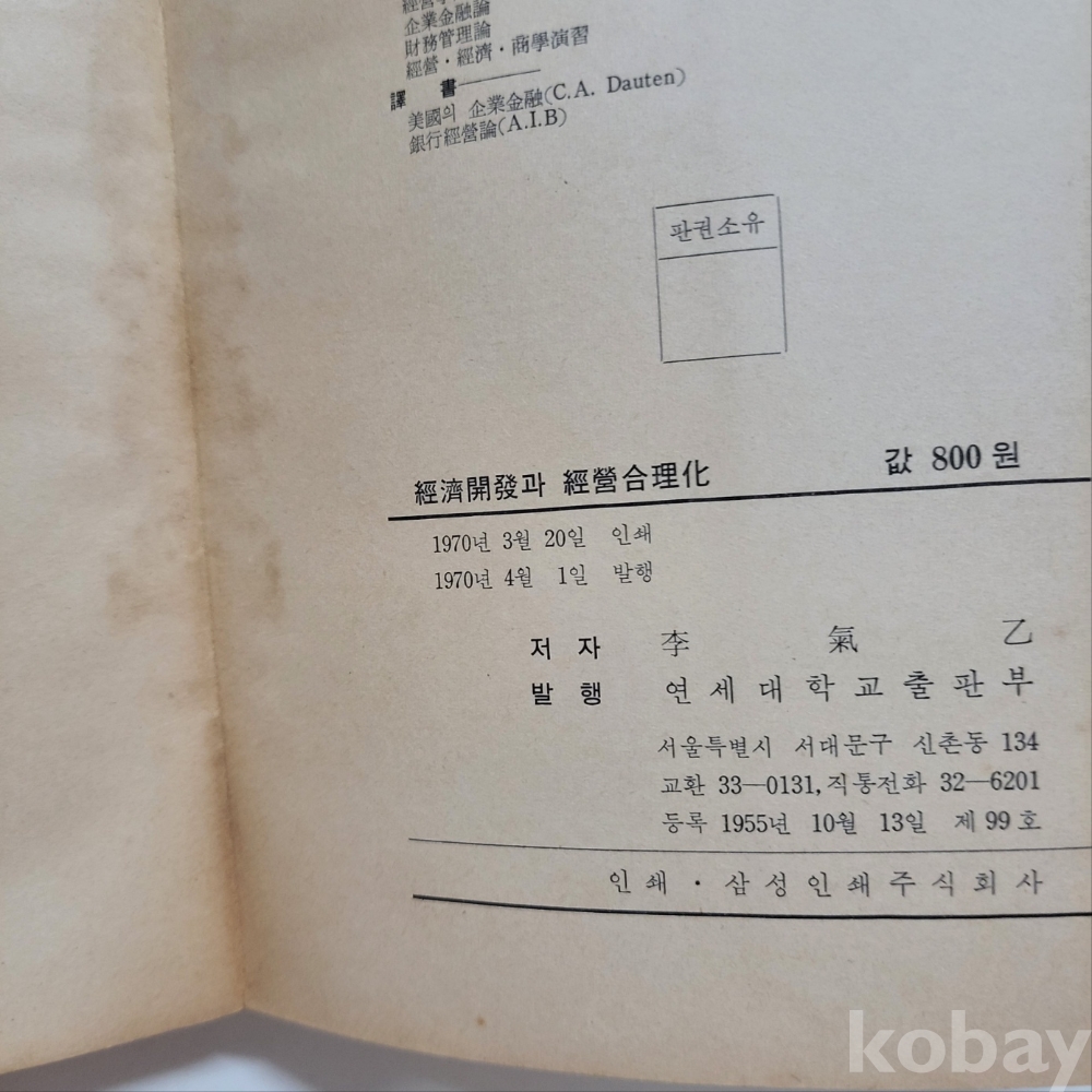 [희귀본] 1970년 연대 출판부 초판본 '경제개발과 경영합리와' 시대상을 다른 구하기 힘든 도서