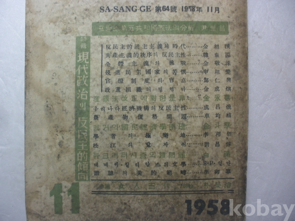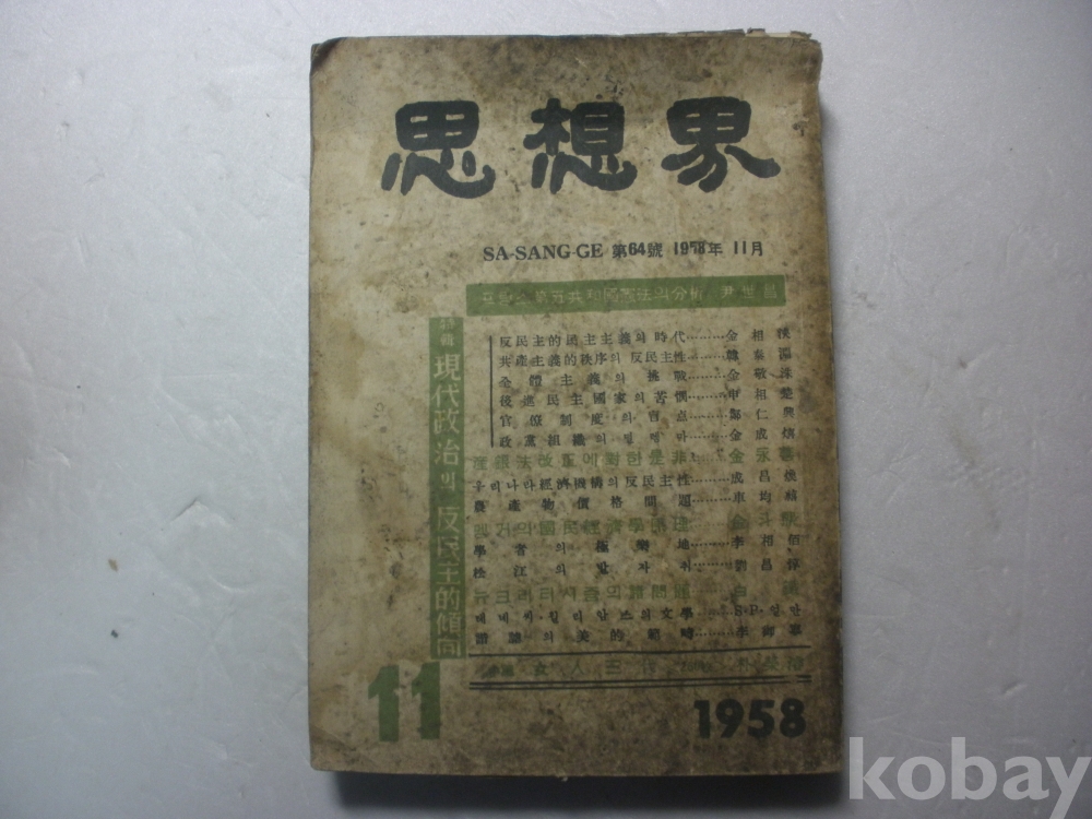 사상계 -현대정치의 반 민주적 경향, 양주동씨의 도전에 답하다 등 (1959년)