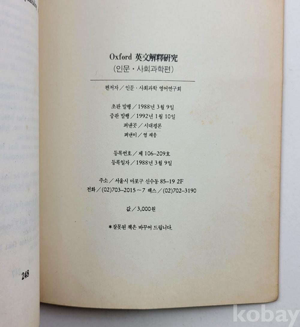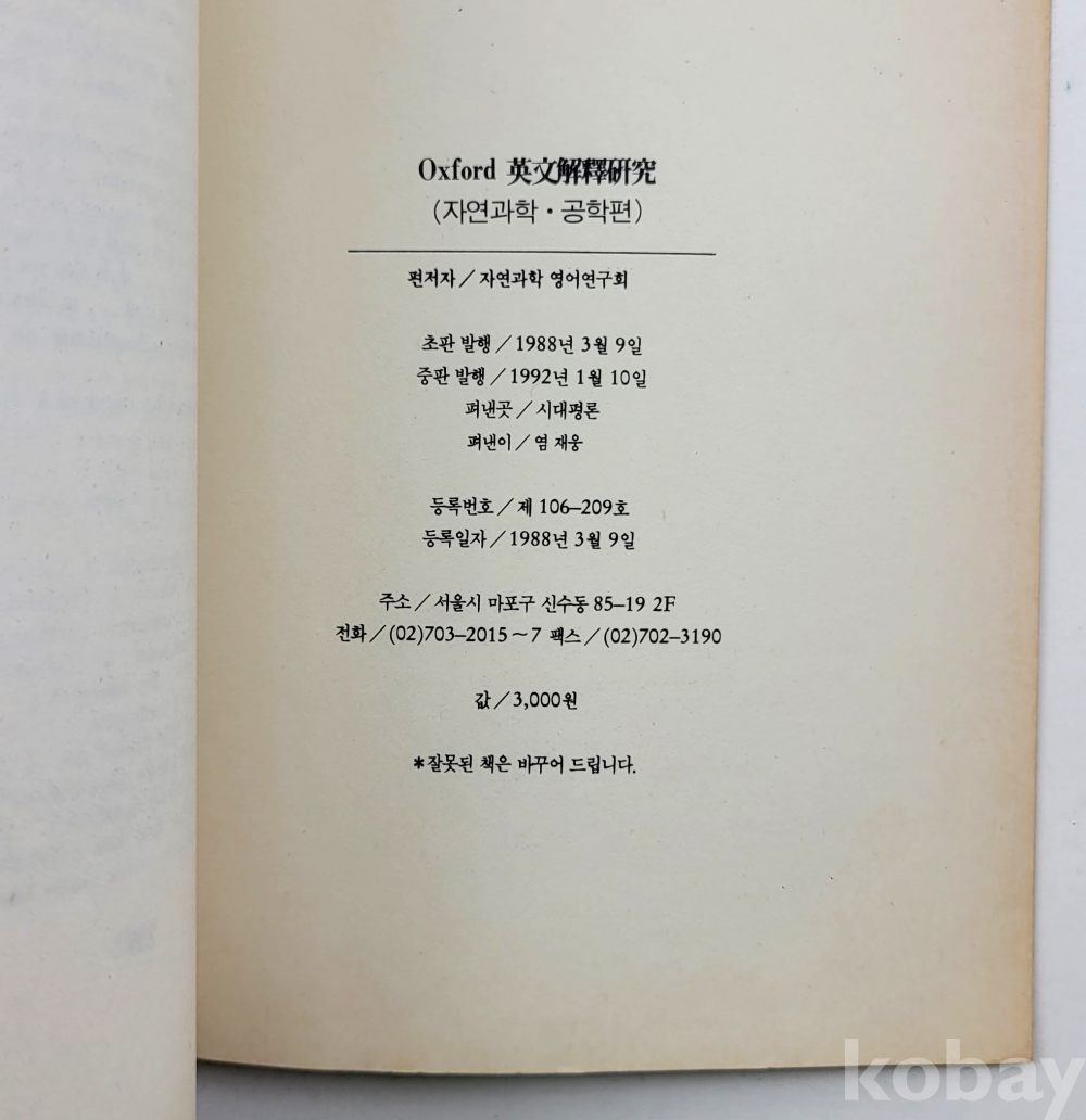 물 품 명 | 옥스포드 영문해석연구 : (1)자연과학 ⦁ 공학 편 (2)인문 ⦁ 사회과학 편 총2권 / 1992년 / 시대평론 |