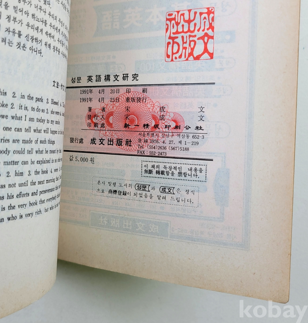 물 품 명 | 성문 영어구문연구 / 1991년 / 송성문 / 성문출판사 |