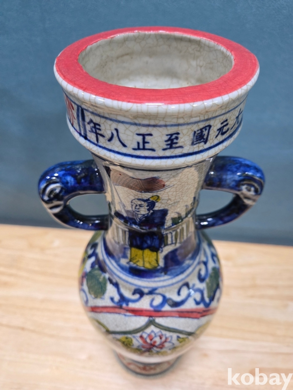 코리끼 모양의 양 손잡이에 목선에는 대원국지정팔년이라 표기 되어 있습니다.