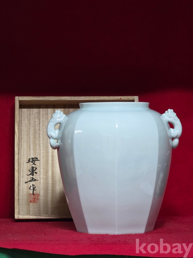 인간문화재 호산 안동오 선생님의 백자 8각 해태 양이오 대형 입니다