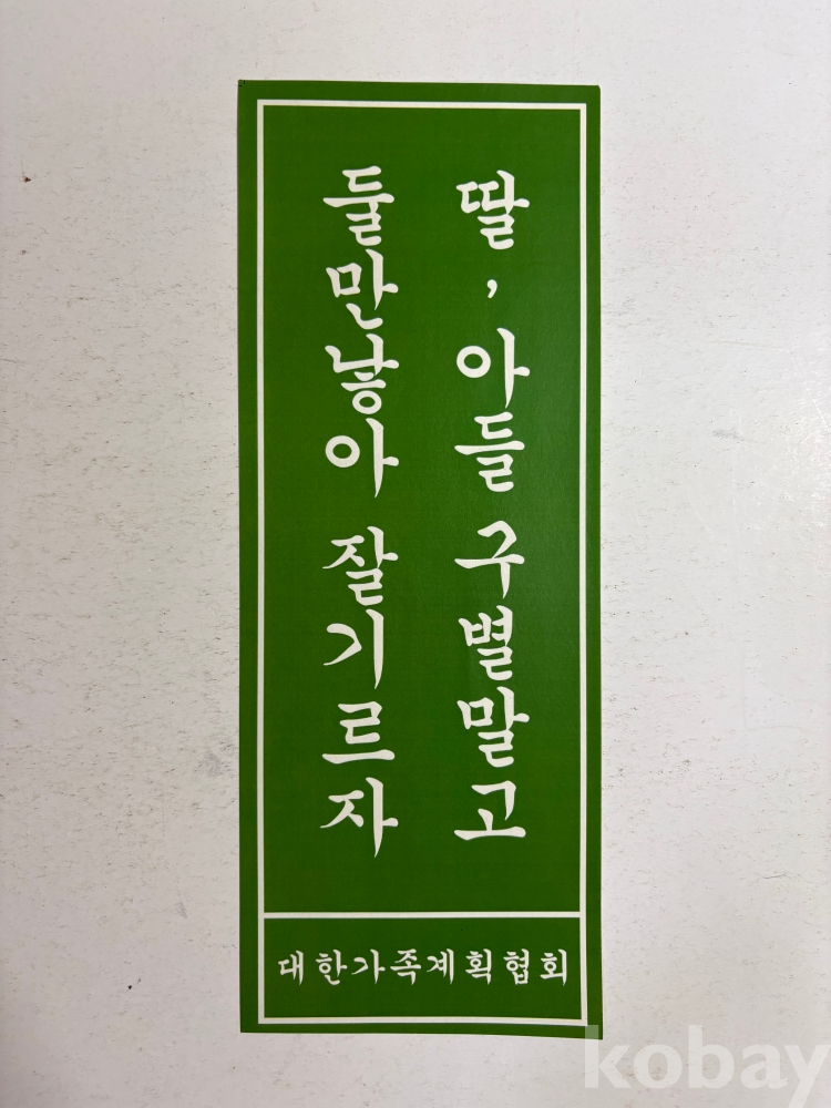 딸, 아들 구별말고 둘만낳아 잘기르자 - 발행처(대한가족계획협회)
