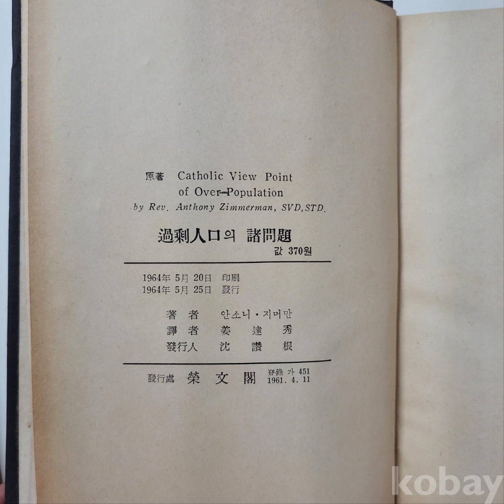 [희귀본] 過剩人口의 諸問題 · 안소니 지머민 / 榮文閣,1964 ; 추가 이미지 요청 가능하십니다.