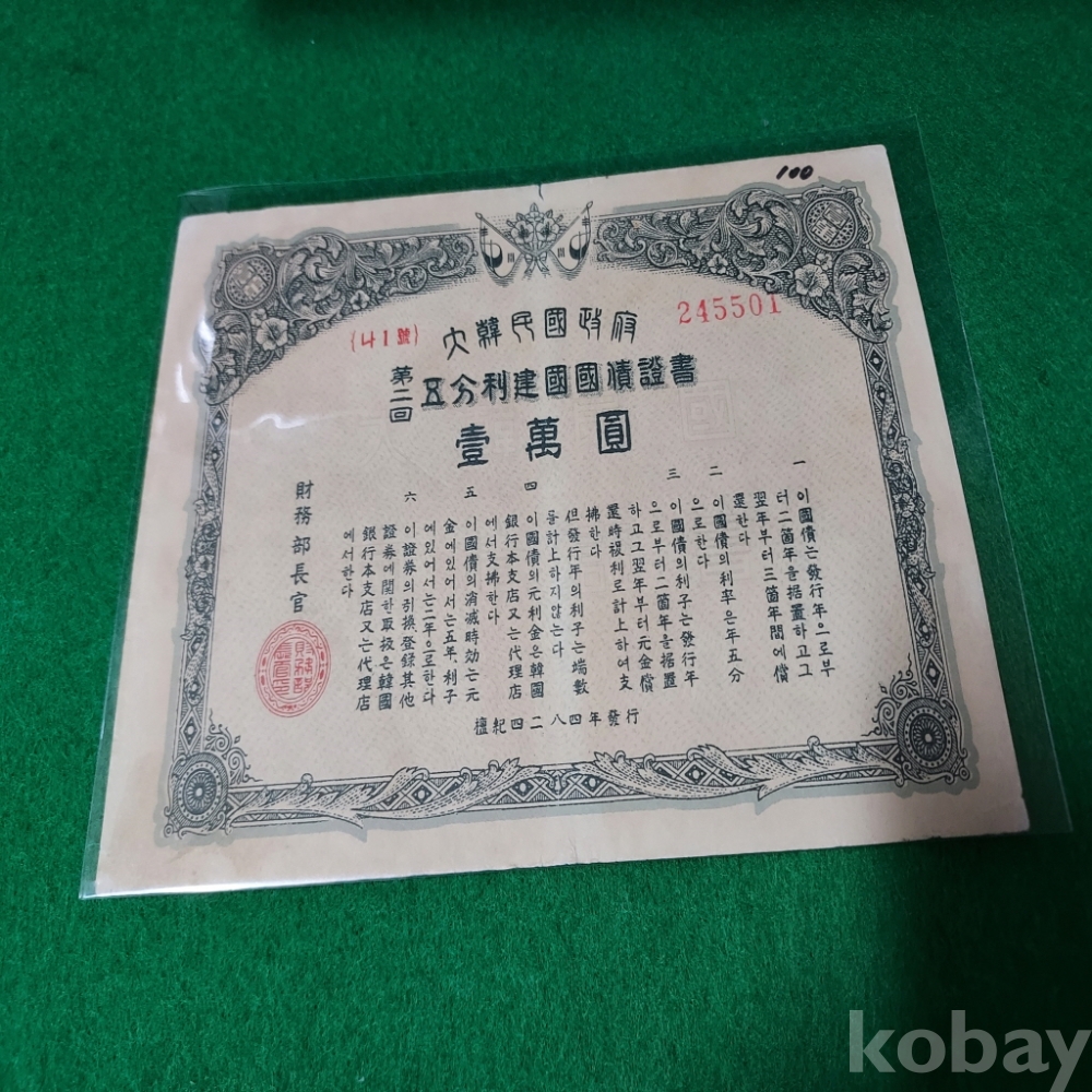 대한민국 1951년 건국채권 2회10000원 사용제