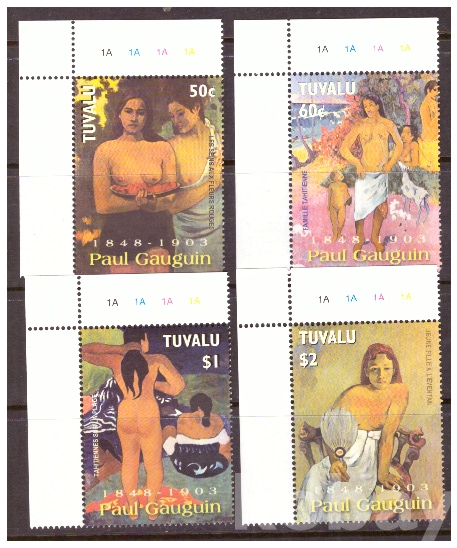 (누드명화) Tuvalu (투발루) 폴 고갱의 누드화 4완 MNH