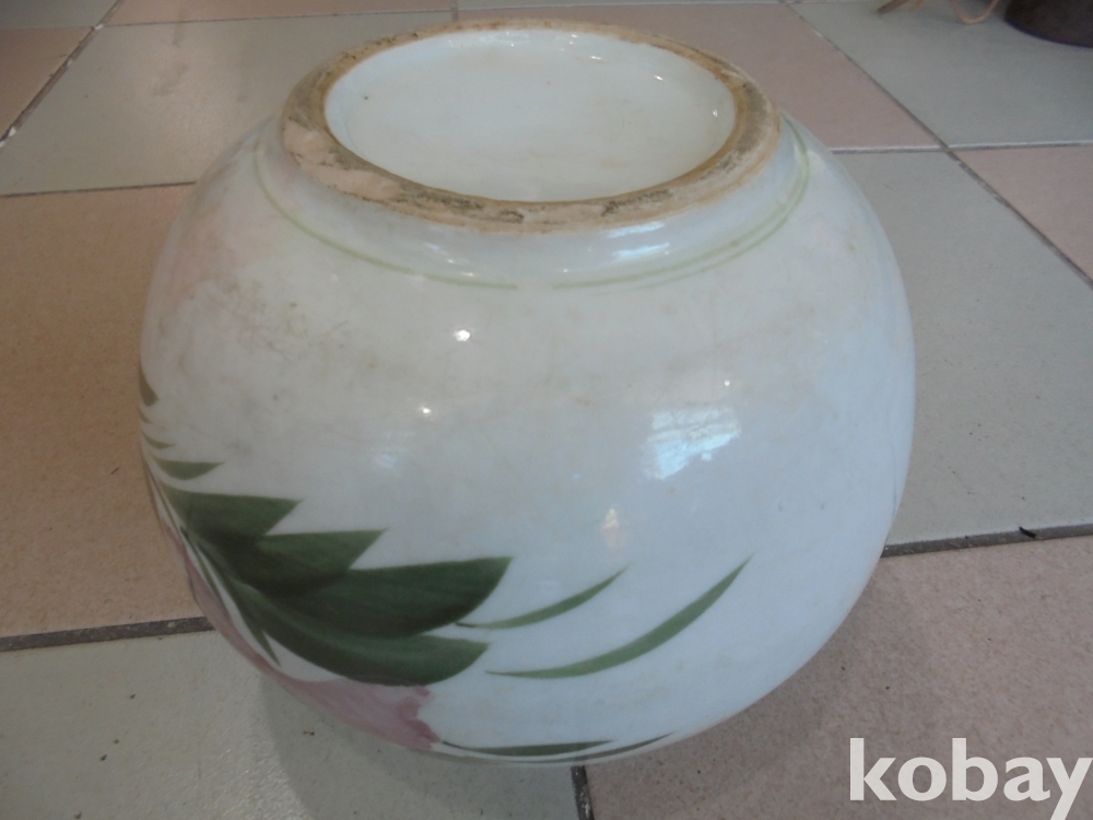 왜정시대 잘살던집에서 사용하던 두텁고 무겁고 큰 특히 붉은색이들어간 귀하고 비싼 완벽한 목단항아리
