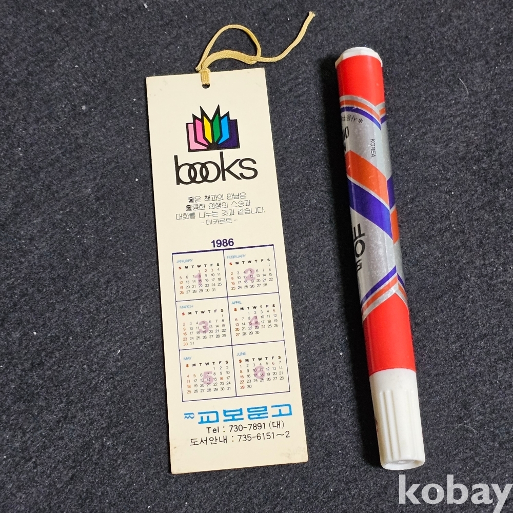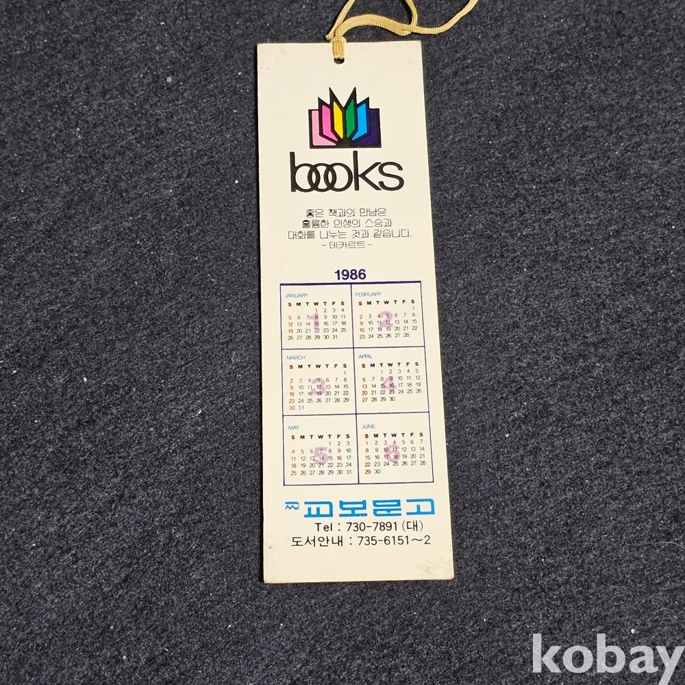 (((근현대사자료/입장권/관람권))) 1986년 캘린더담긴 교보문고 책갈피 (해태제과 크라켈 밀크초코렛)