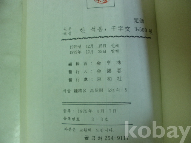 원본 - 한석봉 천자문 (1979년, 경화사)