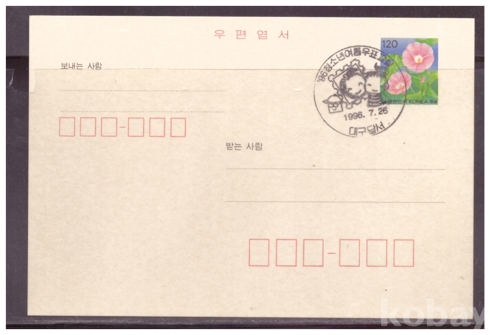 (기념일부인엽서) 1996.7.26 '96청소년여름우표교실*사과우표와 어린이 (대구달서)