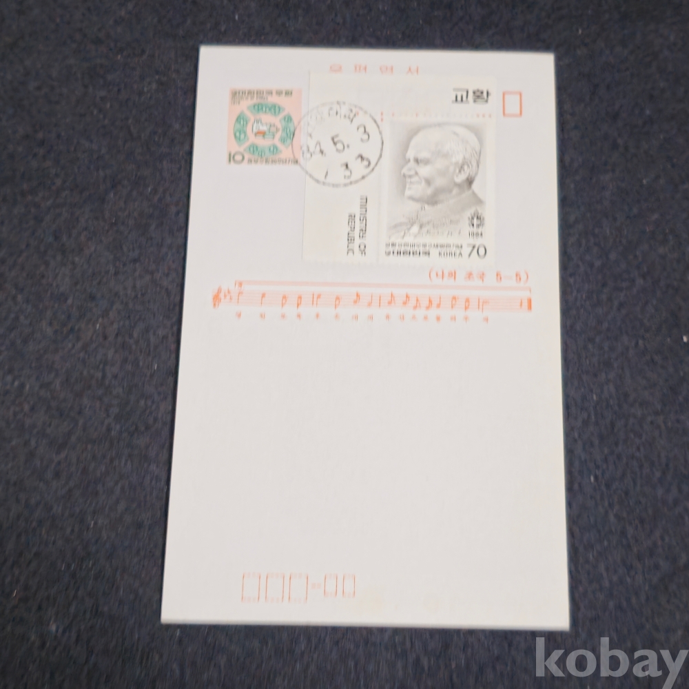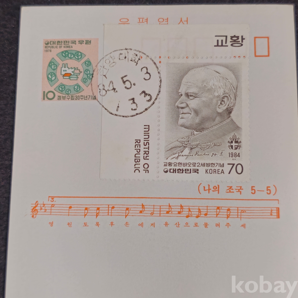 (((우취자료/엽서))) 1984년 교황방한기념우표부착 초일 (한양대학) 우편엽서