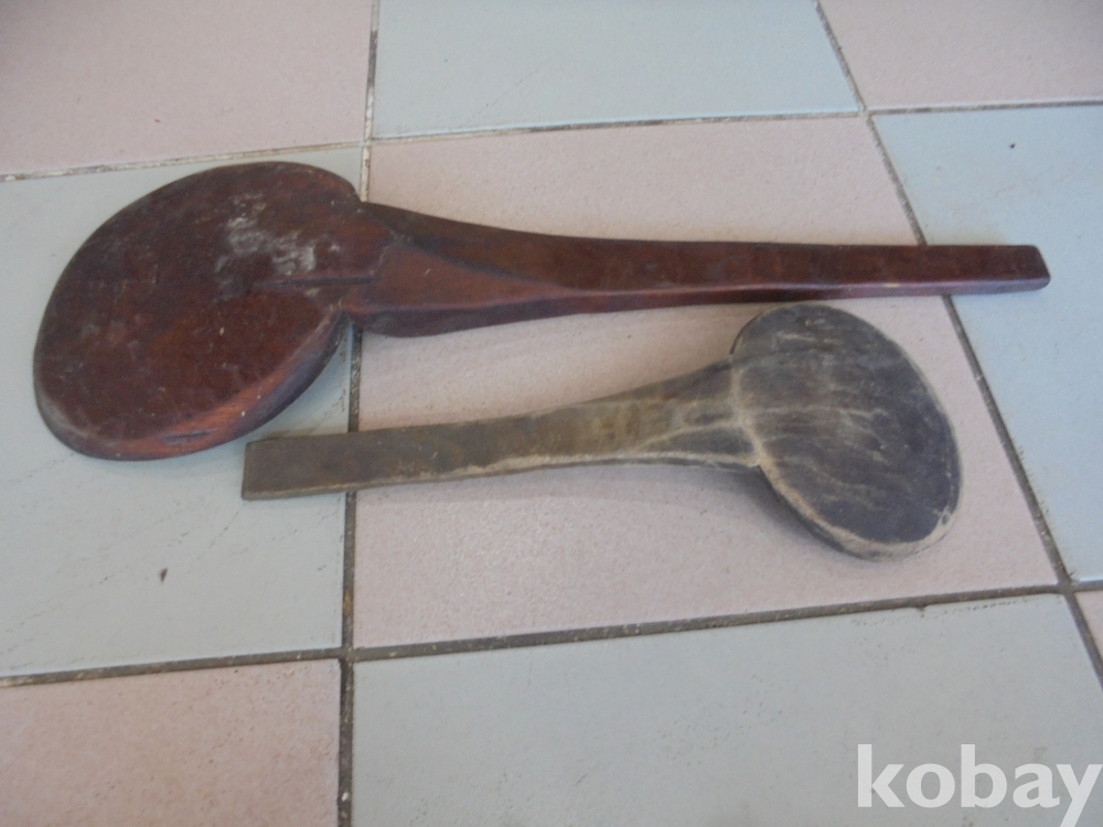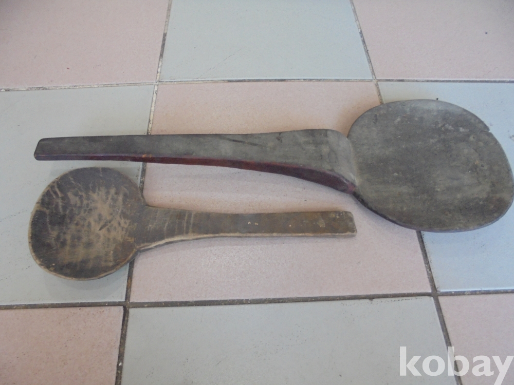 옛부터 황철나무가 주걱에 최고로 각광받아온바 오래된 황철나무 대형주걱과 보통 주걱 2점