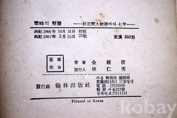 0시의 횃불 : 박정희대통령 따라 7년 - 김종신 著 / 1967년. 한림출판사 발행
