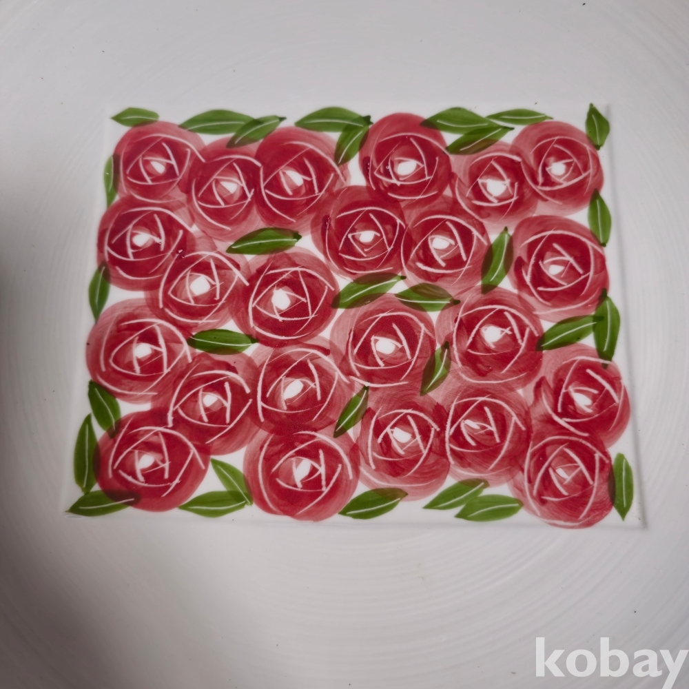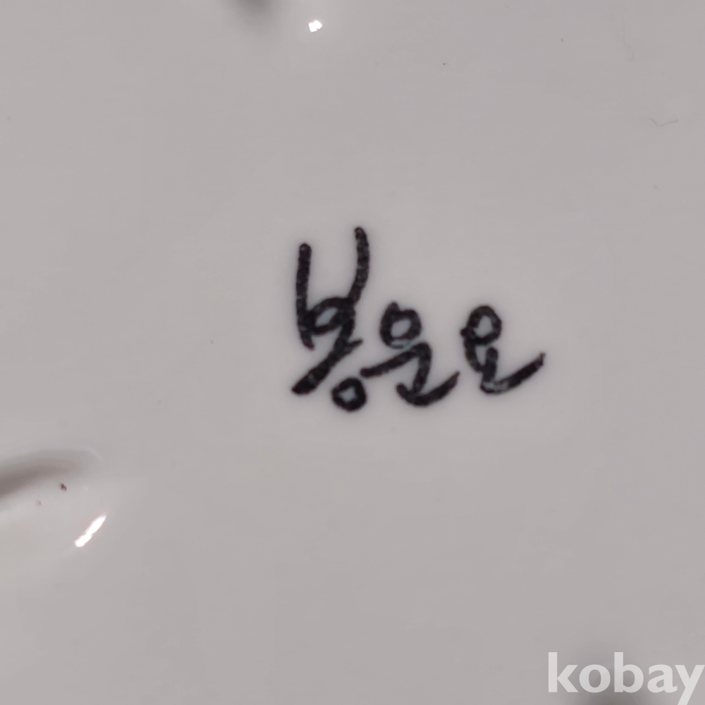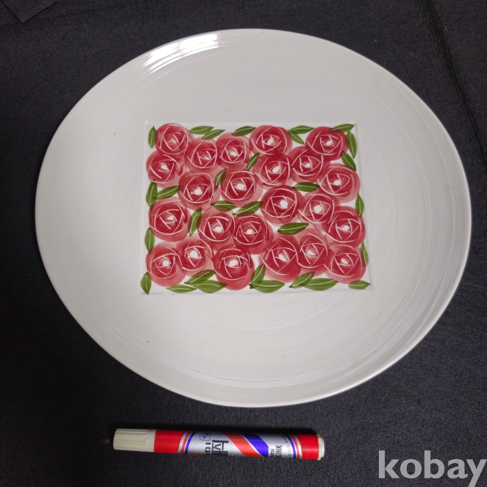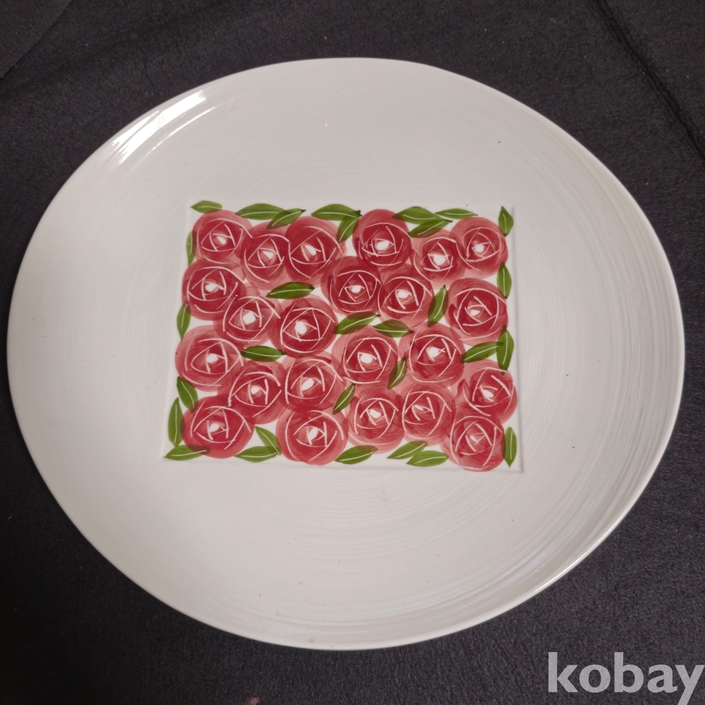 (((근현대사자료/도자기접시))) 오래전 봉운요 수채화 장미 그림 타원형 도자기접시