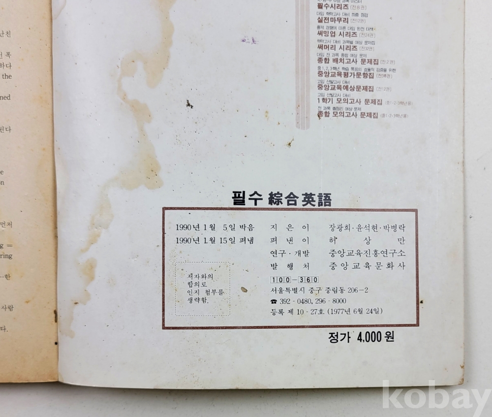 물 품 명 | 필수 종합영어 / 1990년 초판 / 장광희 외 2인 / 중앙교육 |