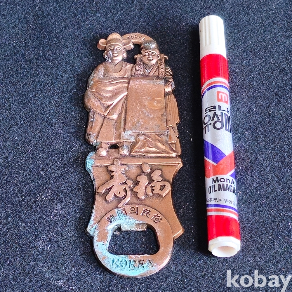 (((근현대사자료/오프너))) 오래전 韓國의 美 신랑신부 혼례모습 금속재질 오프너