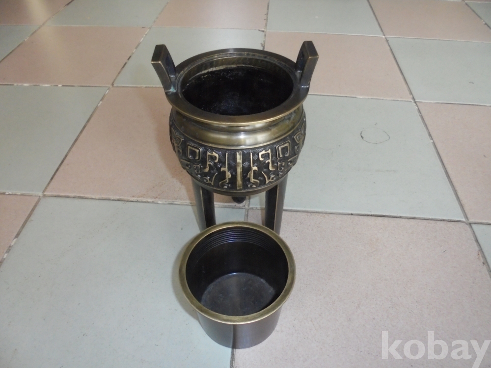 특이하게 다리가길고 문자무늬들어가 황실용같고 안에 그릇을넣어 재처리하기 용이하게만들은 사용에좋은 멋있고 무거운 근대 유기큰향로
