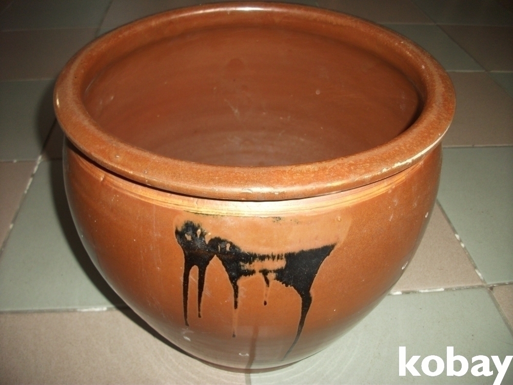 큰물동이형으로 4군데 눈물흐르는것같이 만든 깊고큰 전에만 약간의 흠채있는 무겁고 귀한 진황자 눈물 버럭지