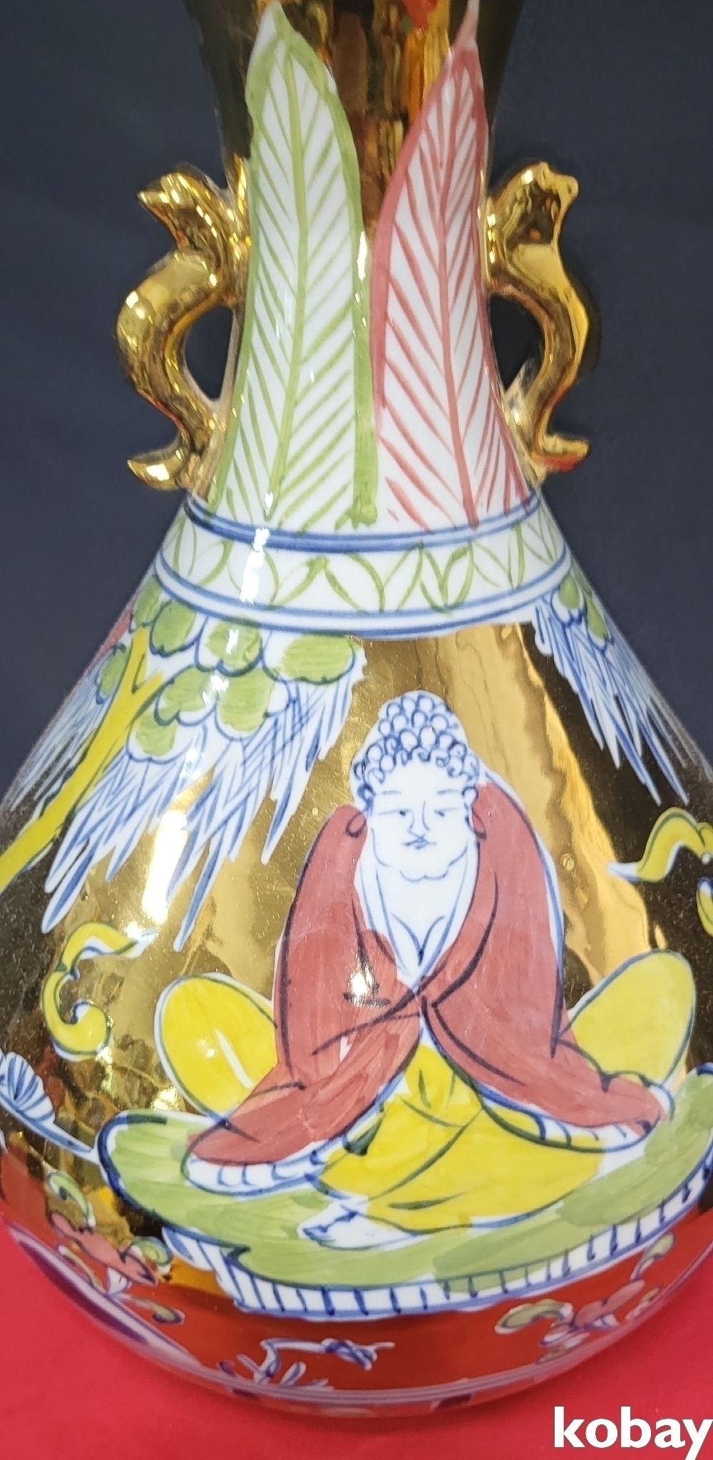 양면에 인물이 도안으로 있으며 기물 전체에 황금색의 채색으로 장식된 명품입니다,