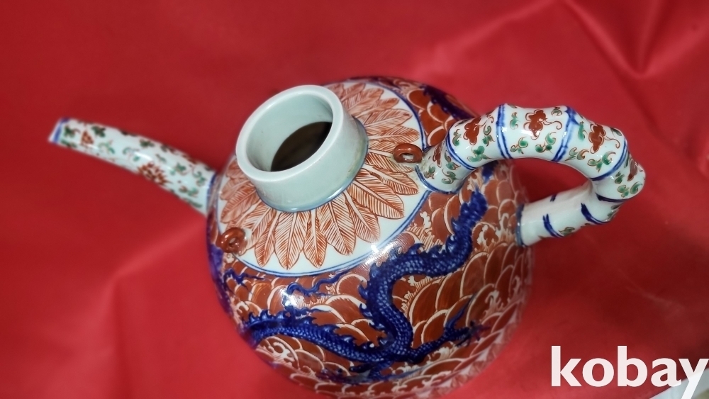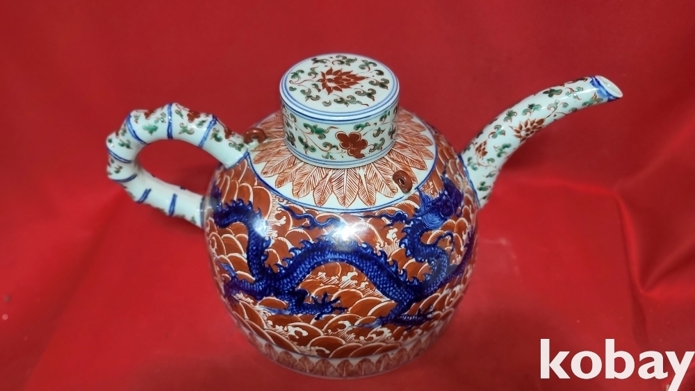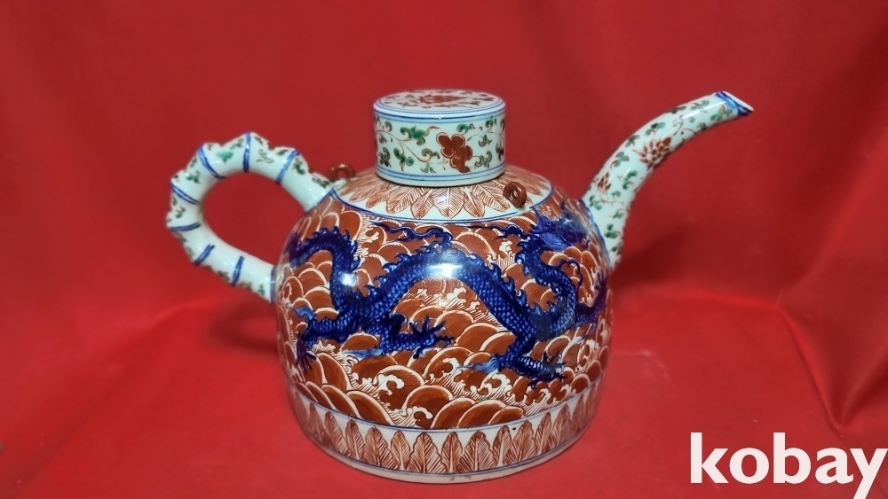 대명선덕연제 관지 청화 유리홍 해수(海水) 쌍용(雙龍)문양 주전자입니다,