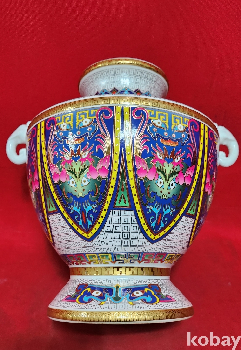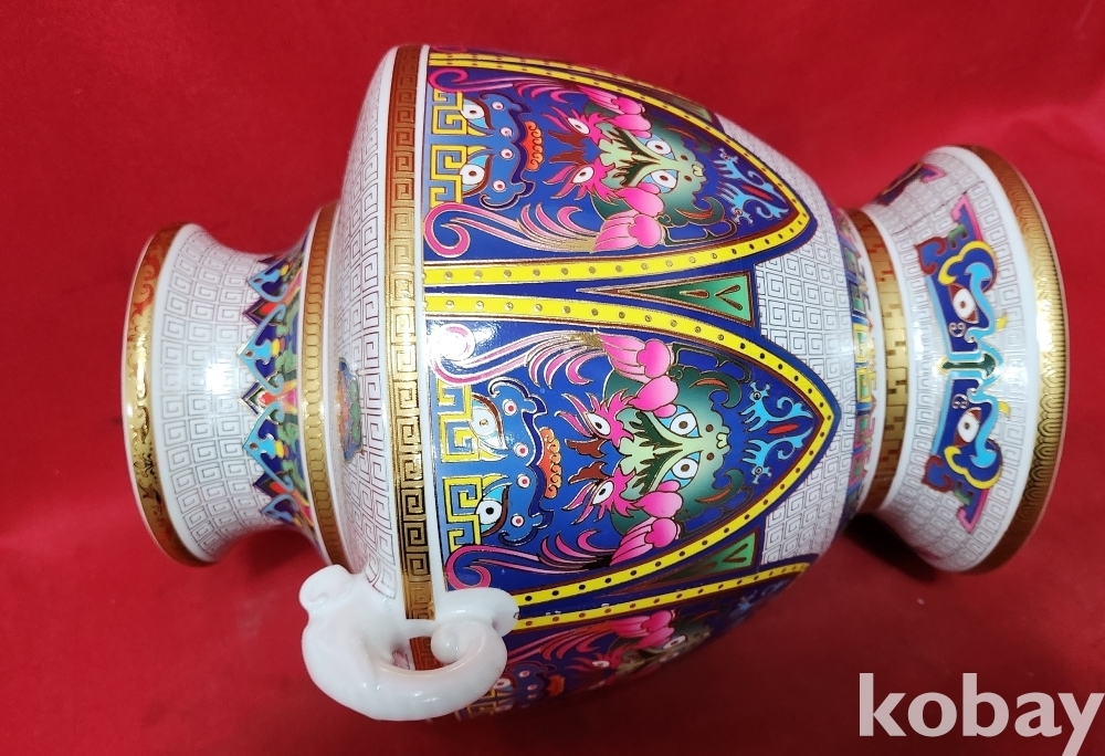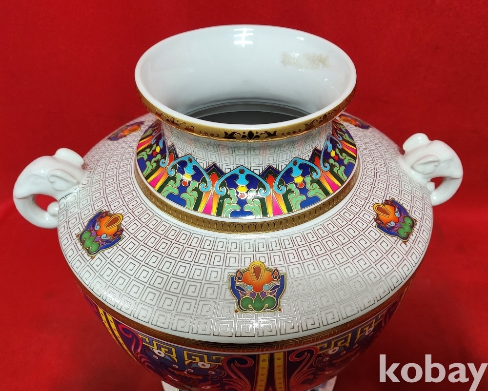 대청건륭 관지 보이는 채색이 아름다운 양귀달린 도자기입니다,