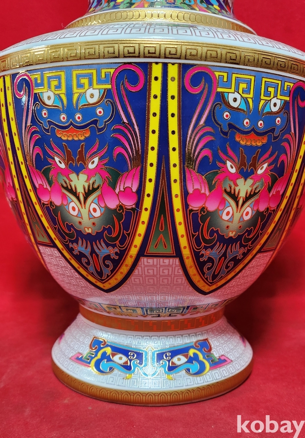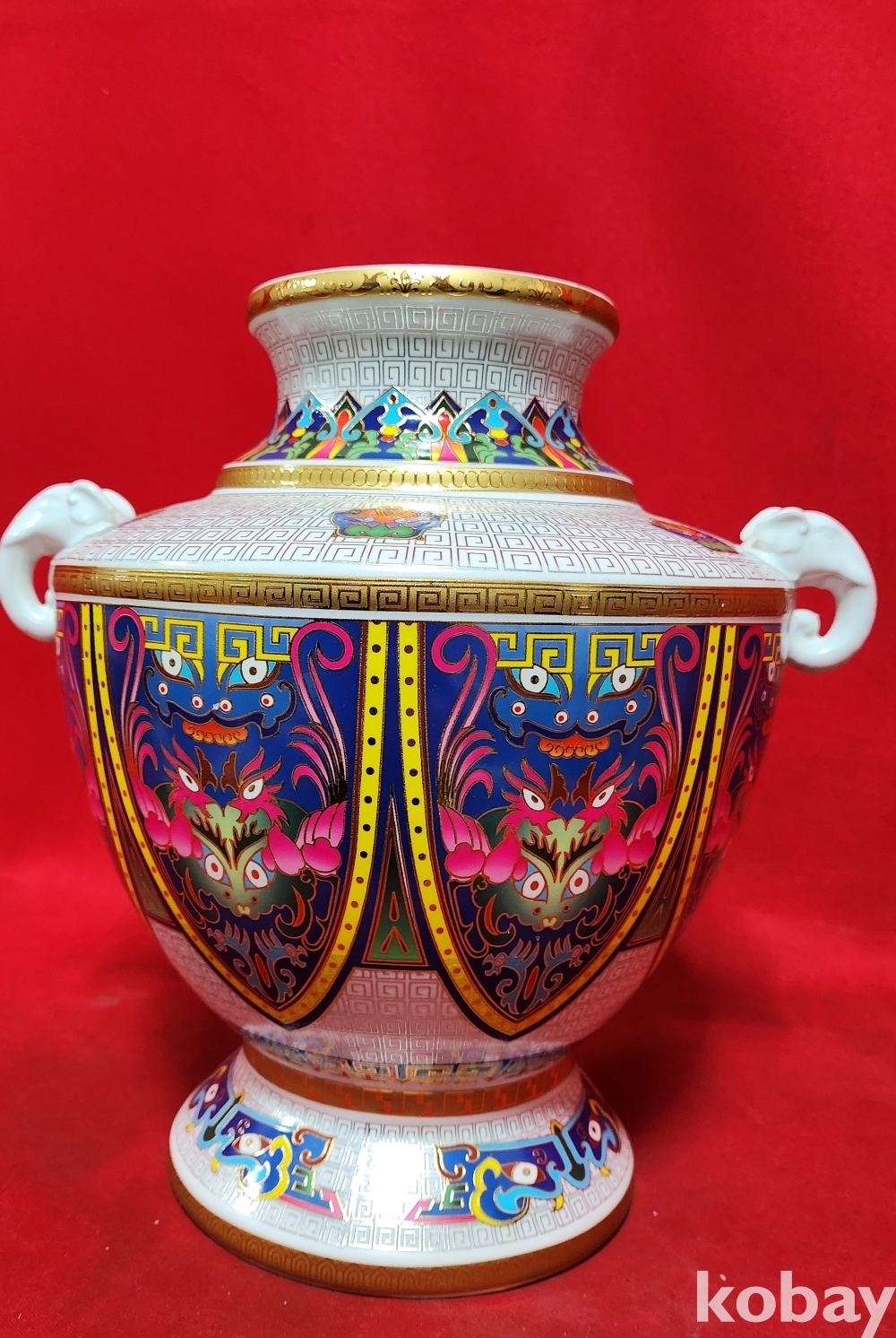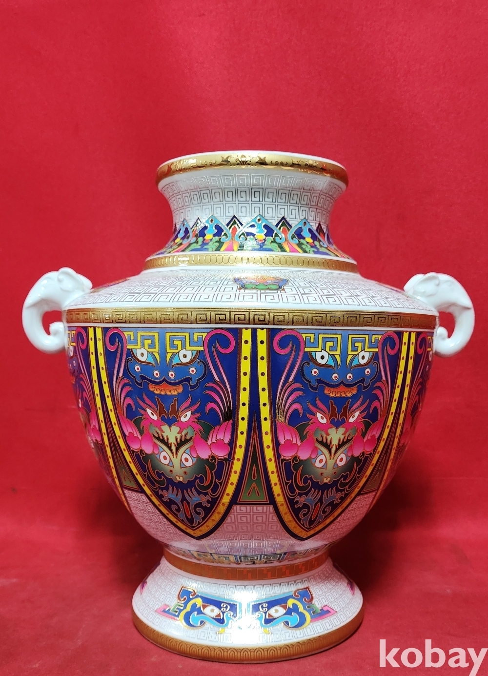 대청건륭 관지 보이는 채색이 아름다운 양귀달린 도자기입니다,