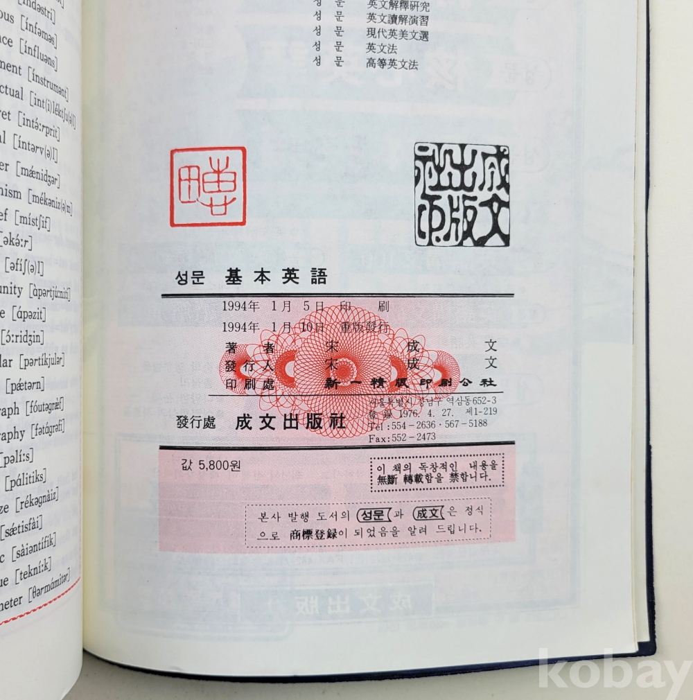 | 물 품 명 | 성문 기본영어 ⦁ 학습서 총 2종 / 1994, 1995년 / 송성문, 최선식 / 성문출판사, 세왕 |
