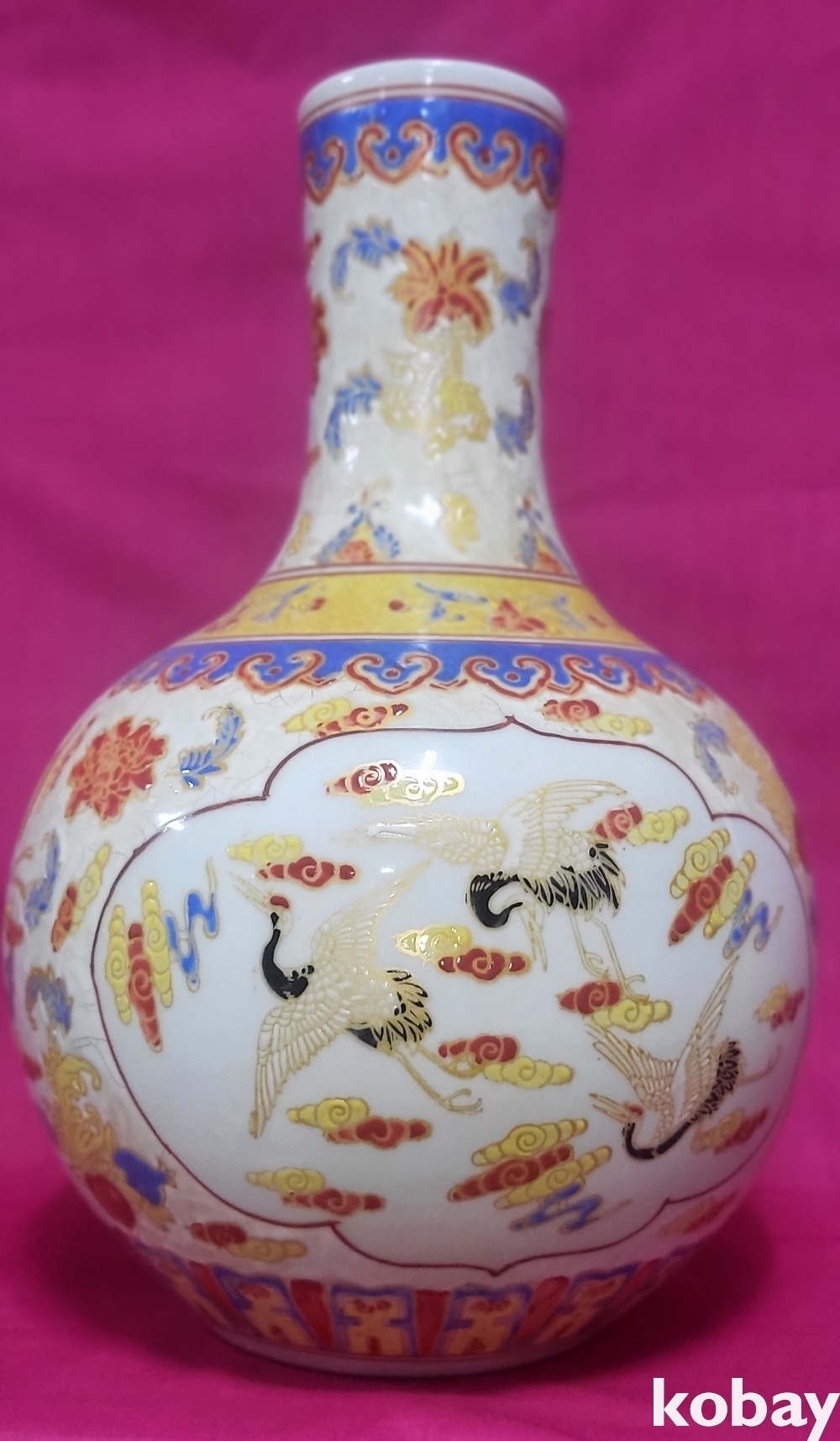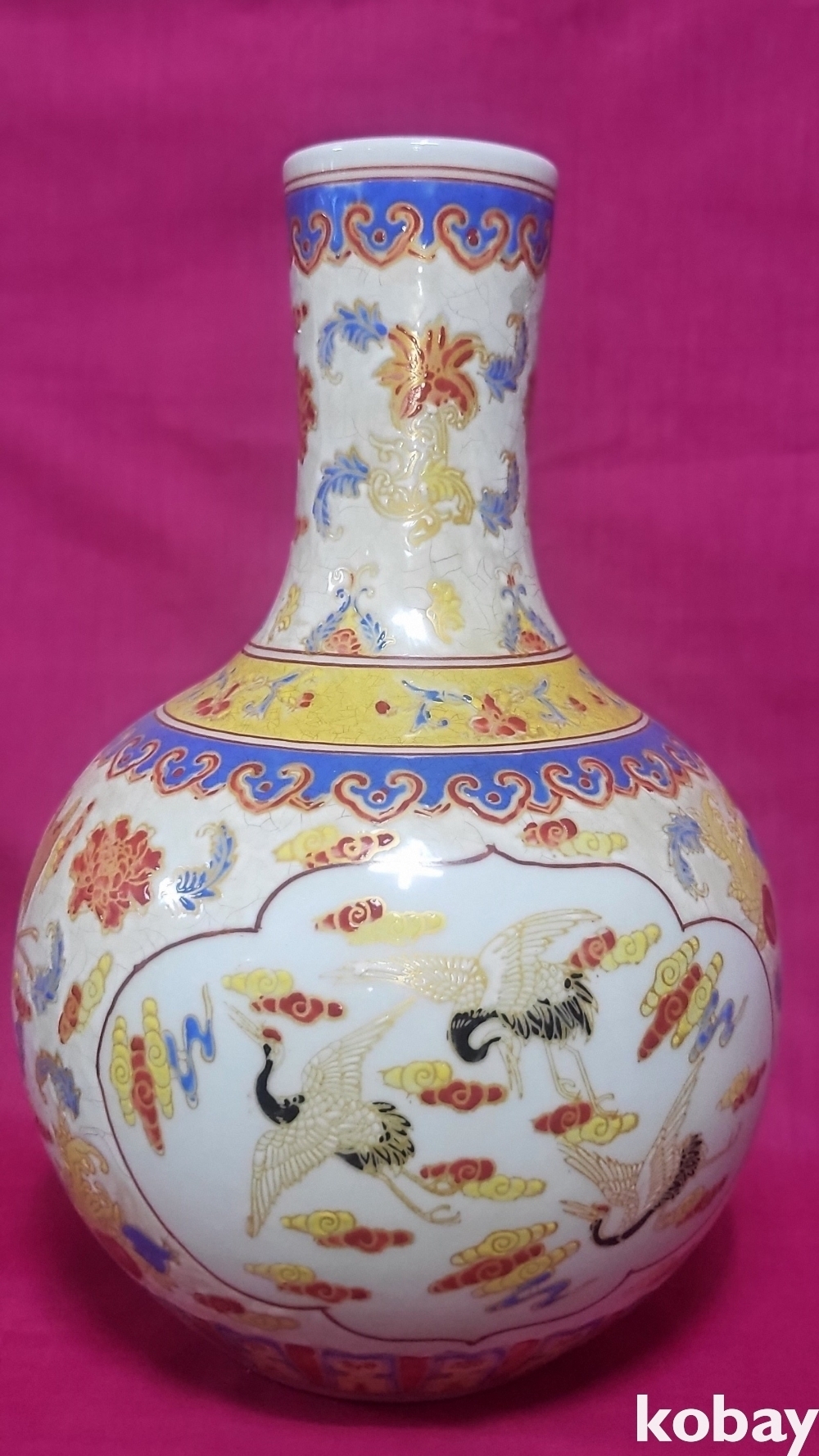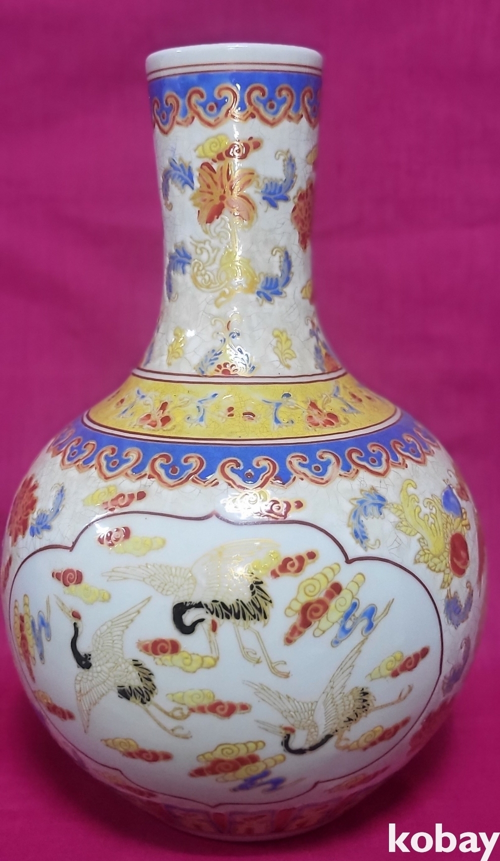 건륭어제 건륭어위지보 황청건륭어용 관지 분채 개광 운학(雲鶴)문 광구병입니다,