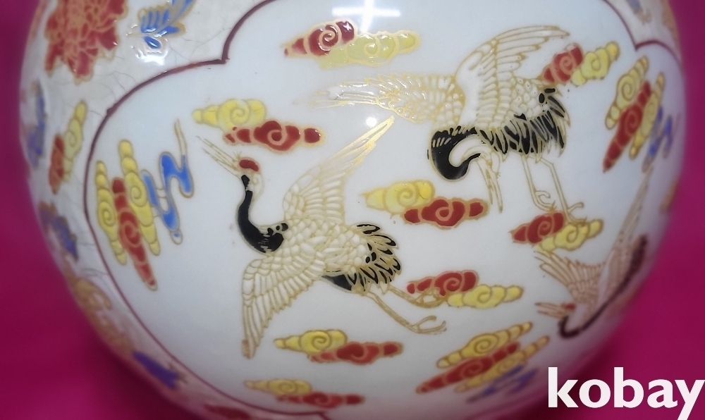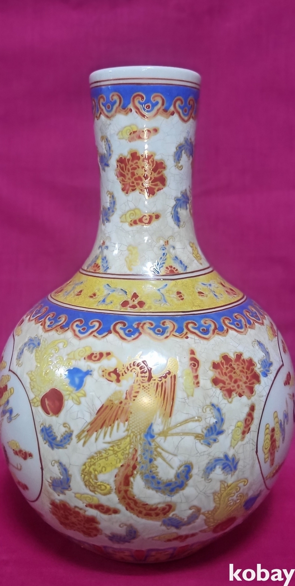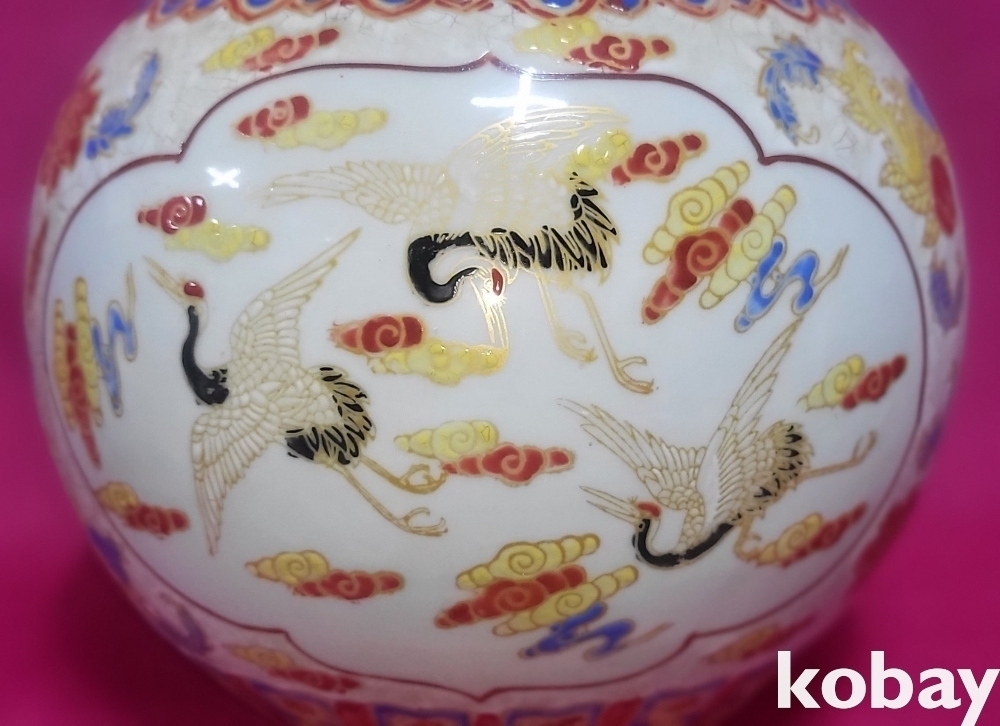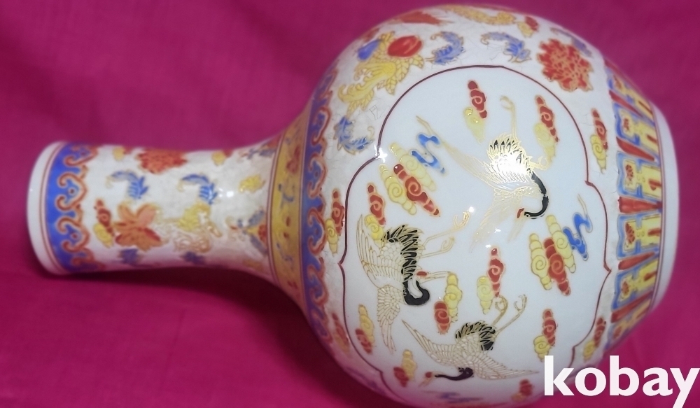 건륭어제 건륭어위지보 황청건륭어용 관지 분채 개광 운학(雲鶴)문 광구병입니다,