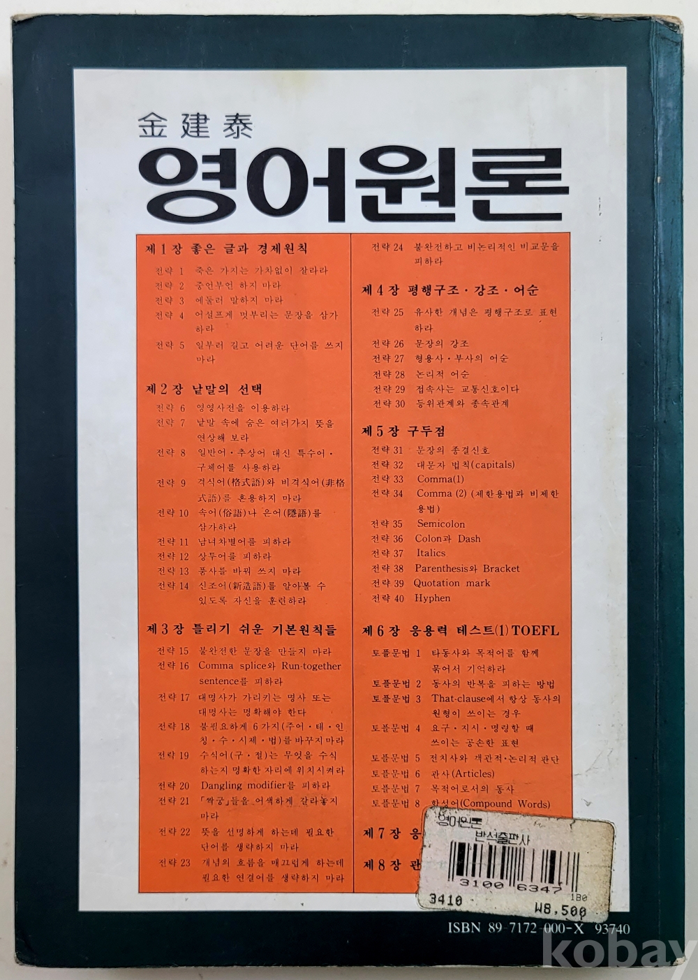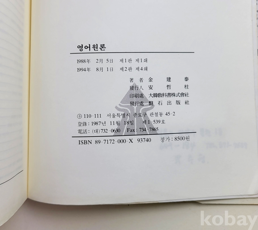 물 품 명 | 영어원론 / 1994년 / 김건태 / 반석출판사 |