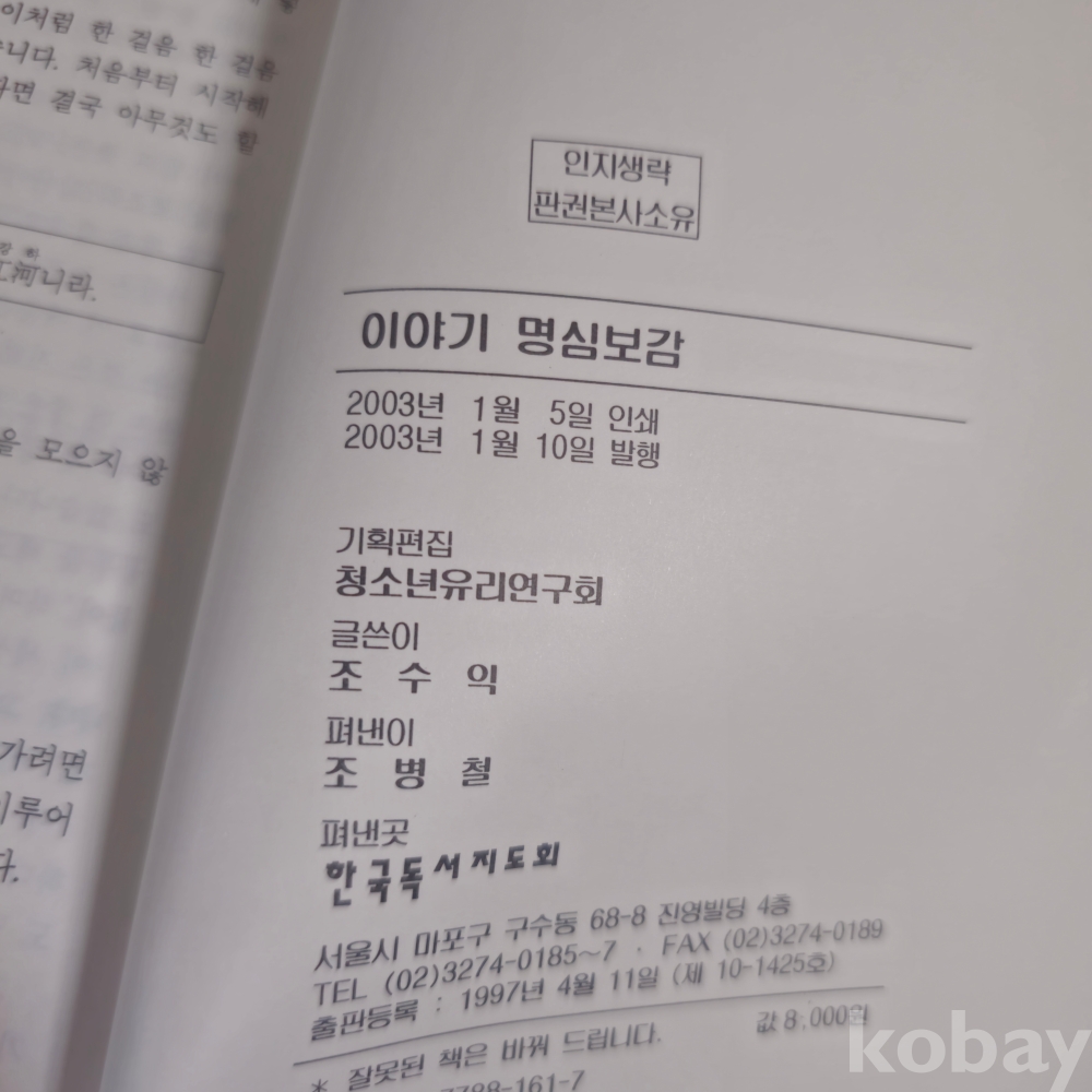 (천원경매) (((서적))) 이야기 명심보감 - 인성교육 지침서 (2003년 발행)