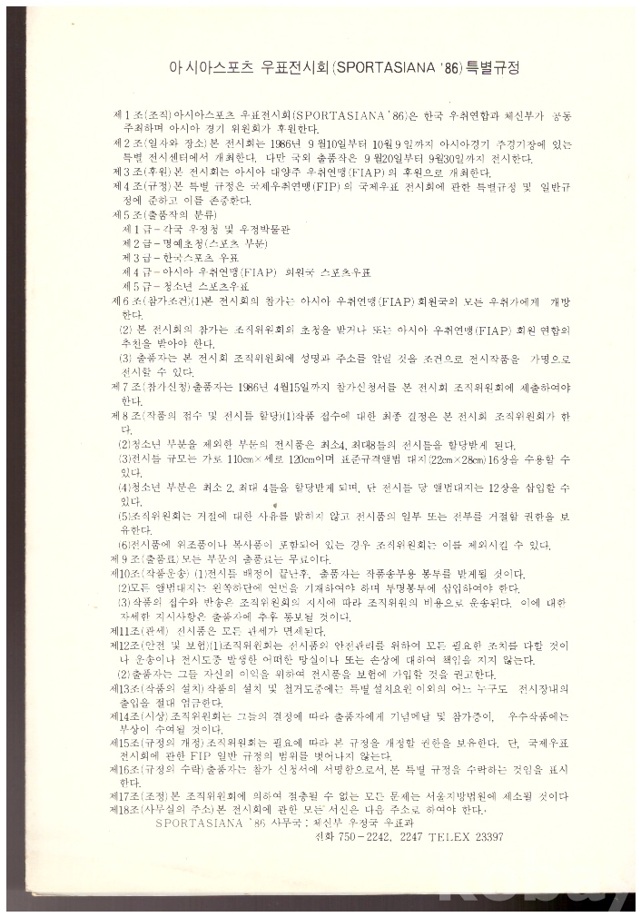 (우취자료) 1986.4.22-26 아시아 스포츠 우표전시회 국내작품선발전 팜플렛 (6면)
