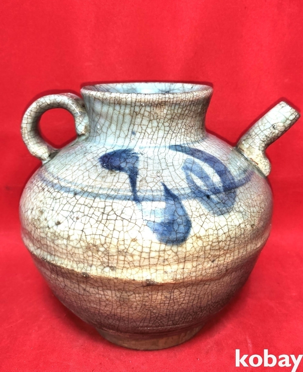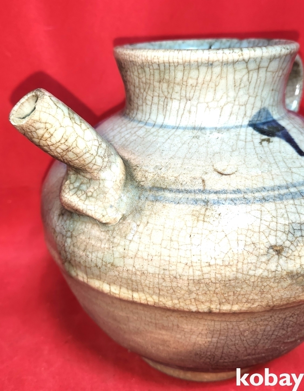 백년 이상의 연대 갖춘 청화백자 빙렬이 만개한 주전자입니다,