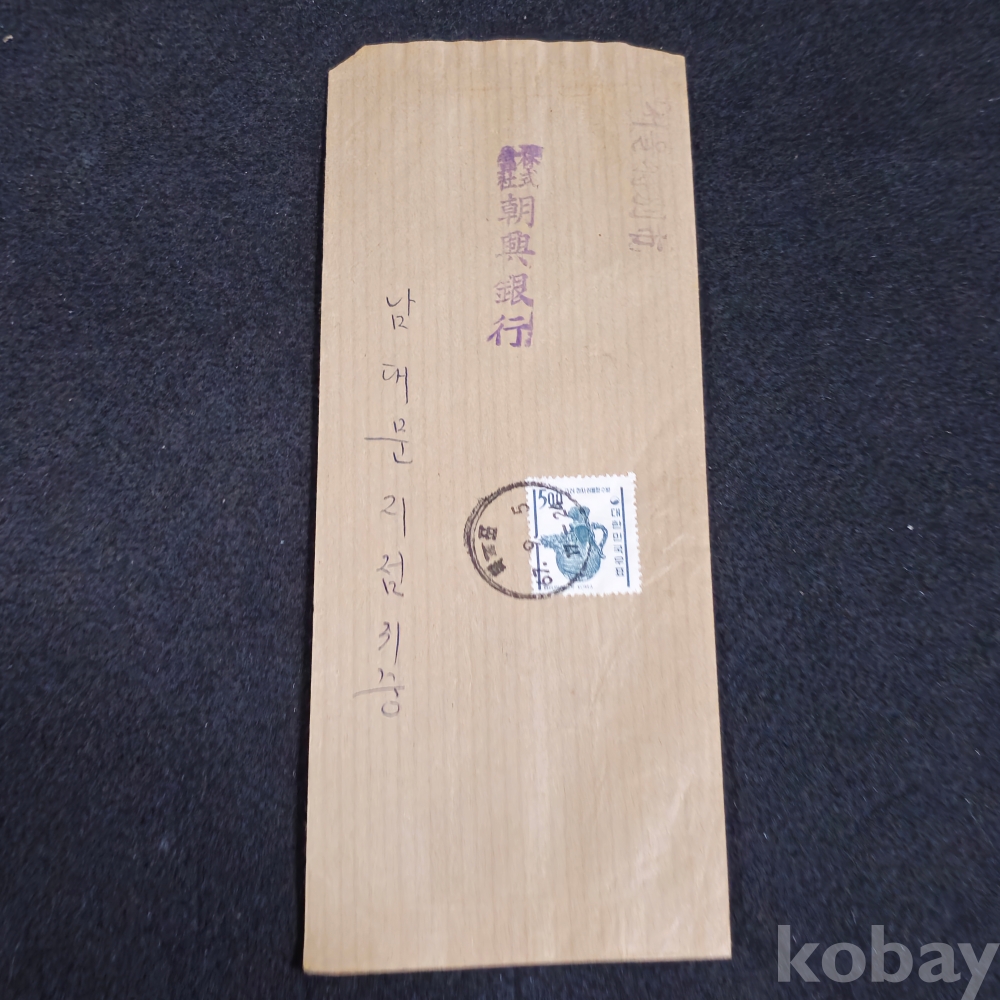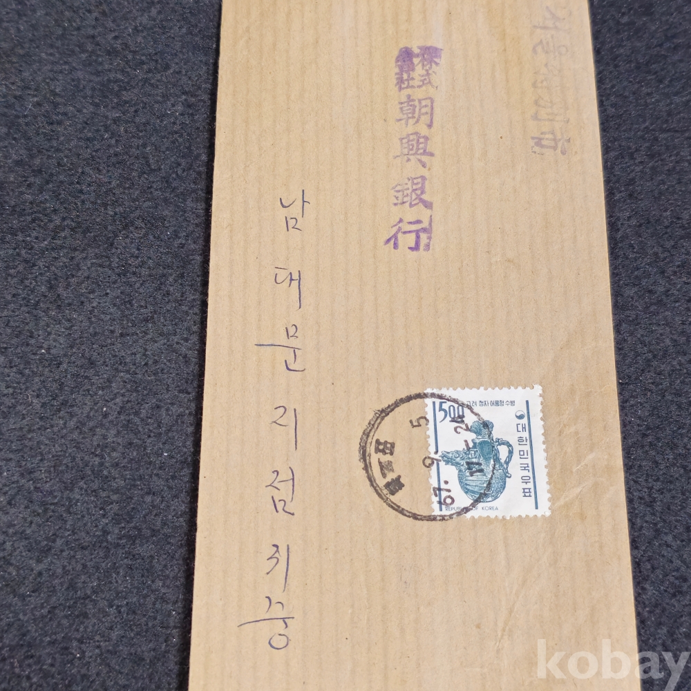 (((우취자료/은행자료/근현대사자료))) 조흥은행에서 발송한 1967년 (고려청자어룡형 수병 5원) 소인찍인 실체봉투